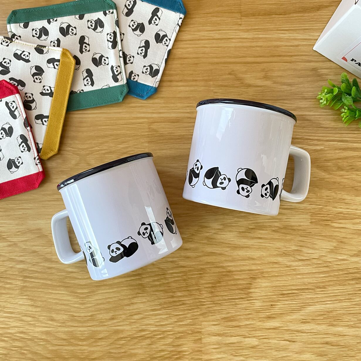 ころころ転がるパンダたちが愛らしい、陶器製のマグカップです。