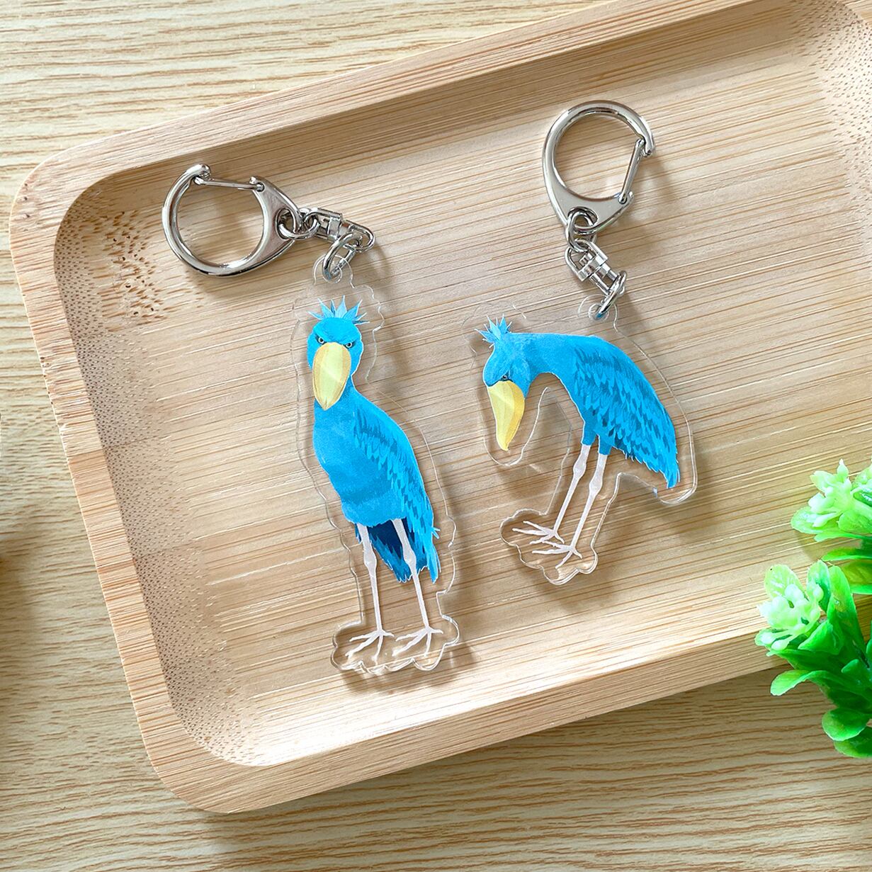 ハシビロコウの姿を色鮮やかに描いたアクリルキーホルダーです。