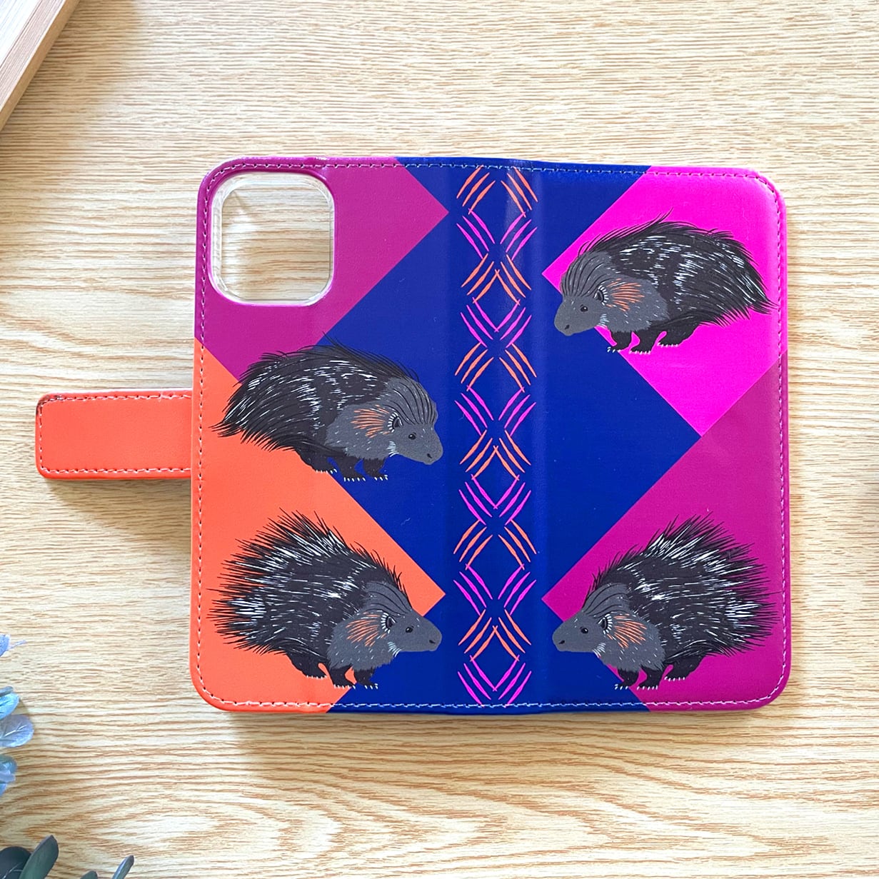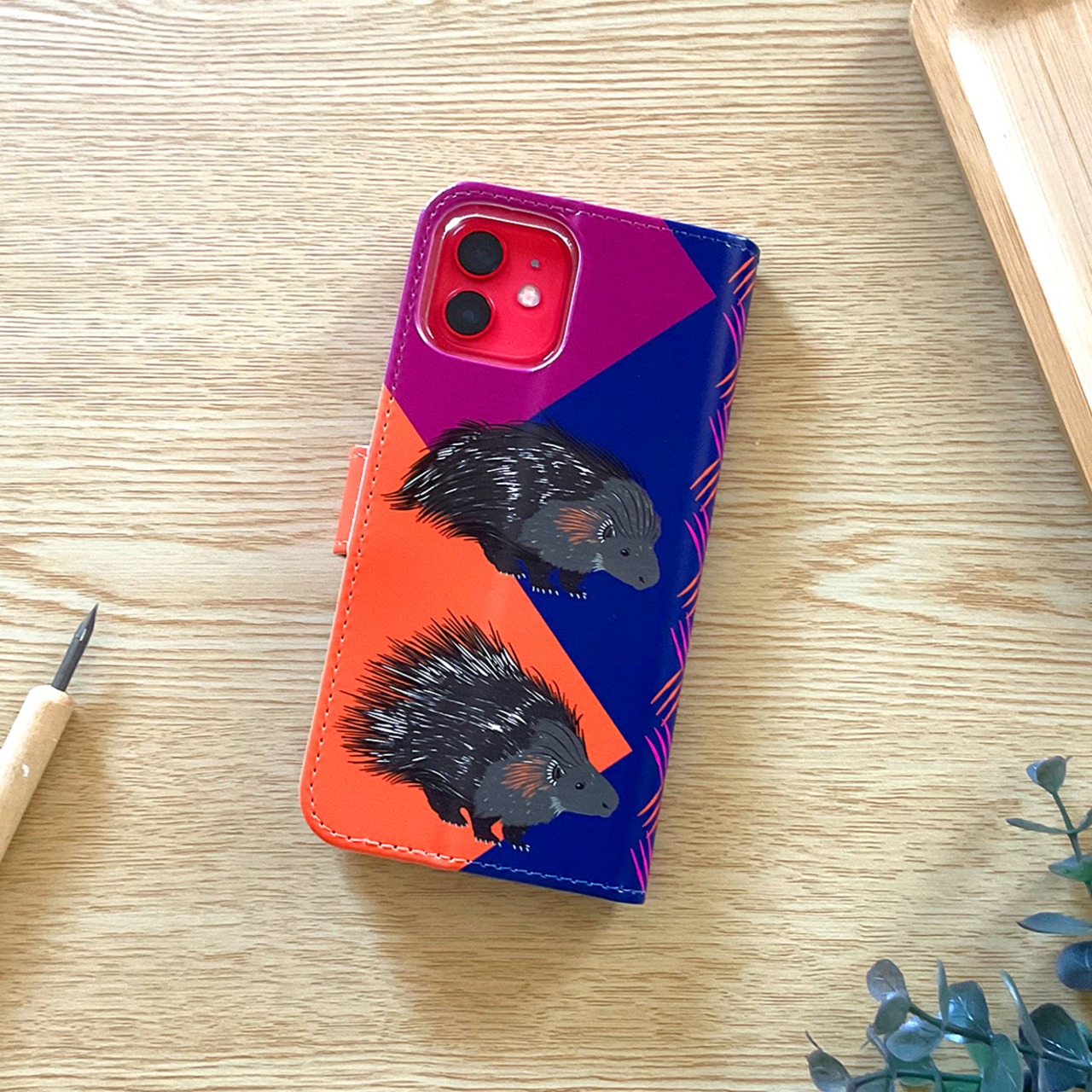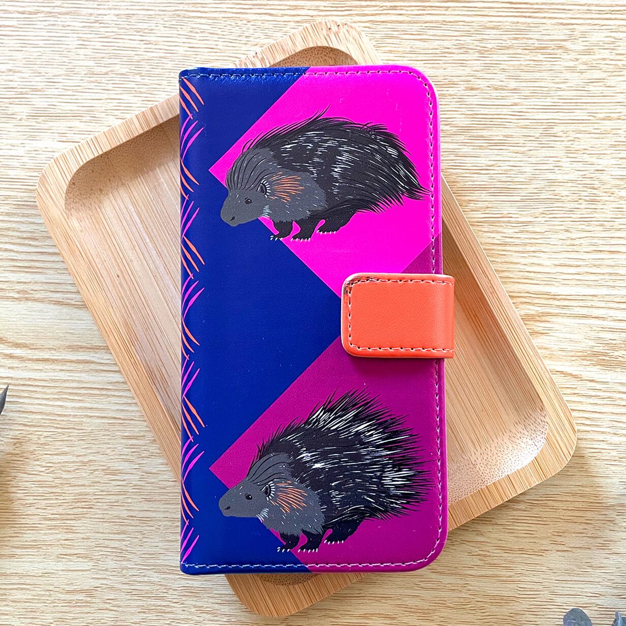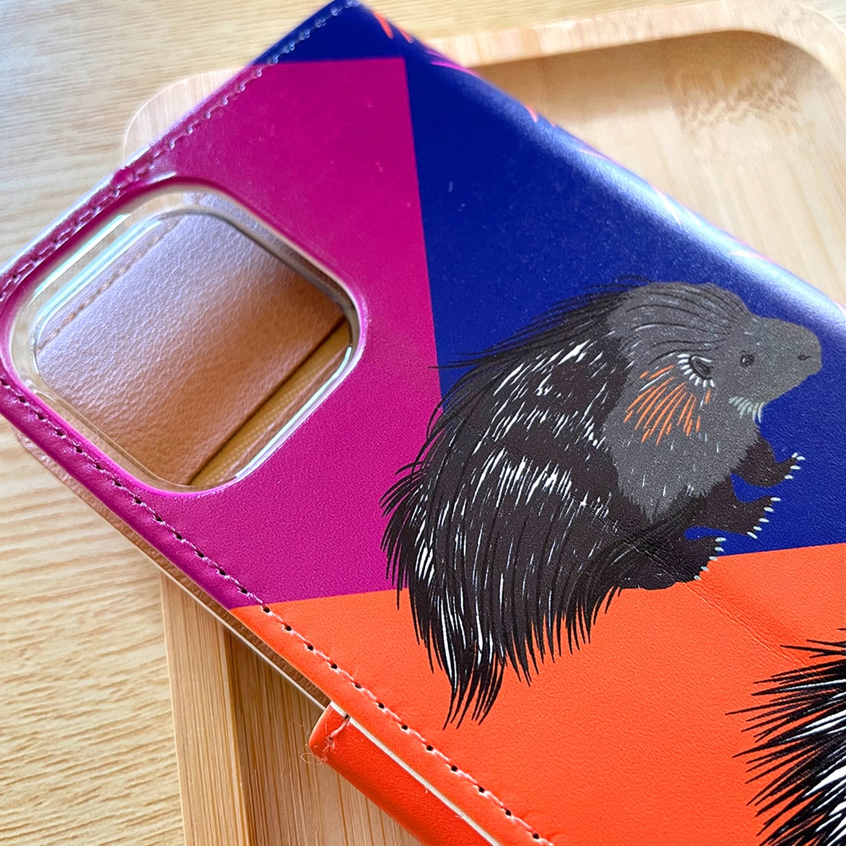 ビビッドな色合いにヤマアラシが映えるおしゃれなスマホケースです。