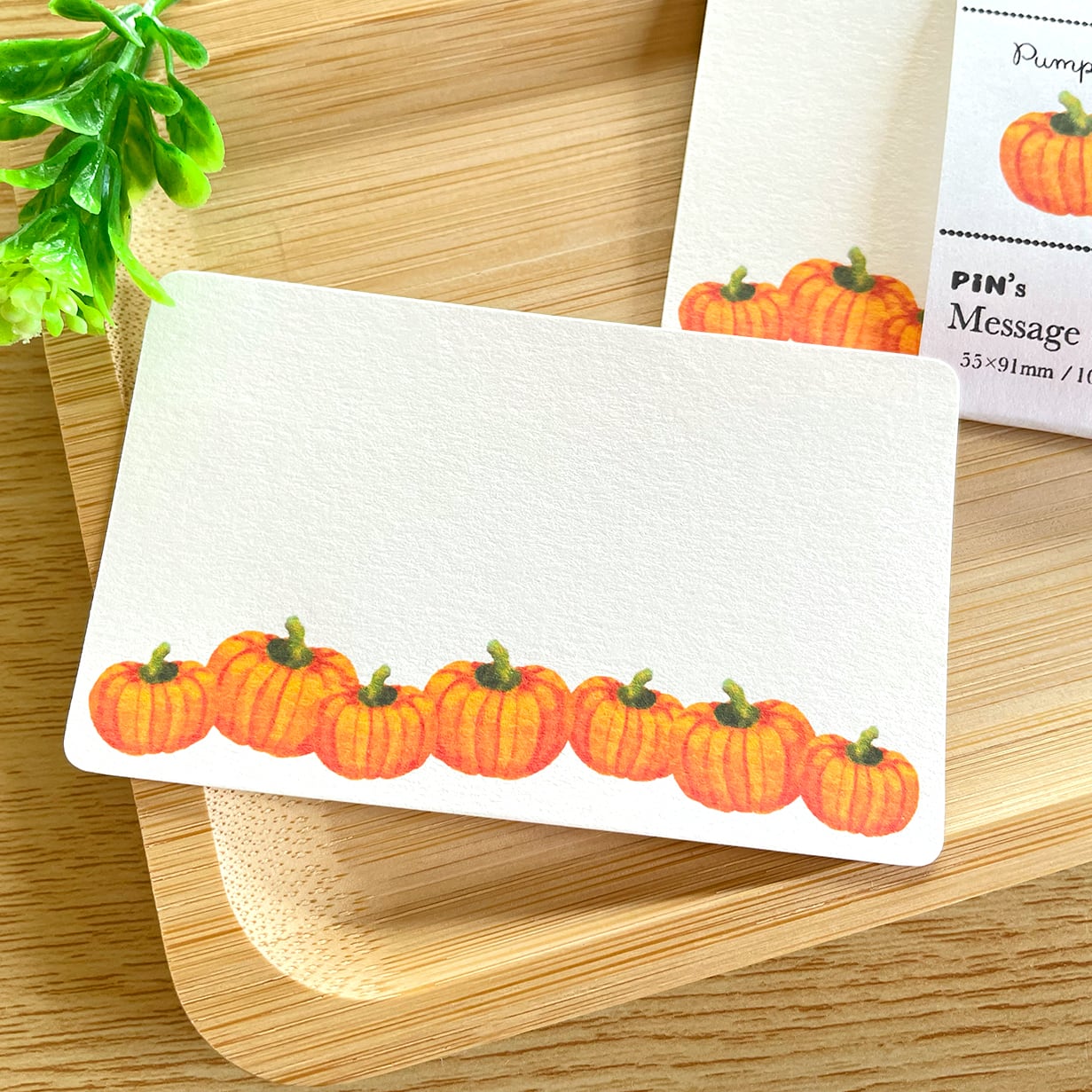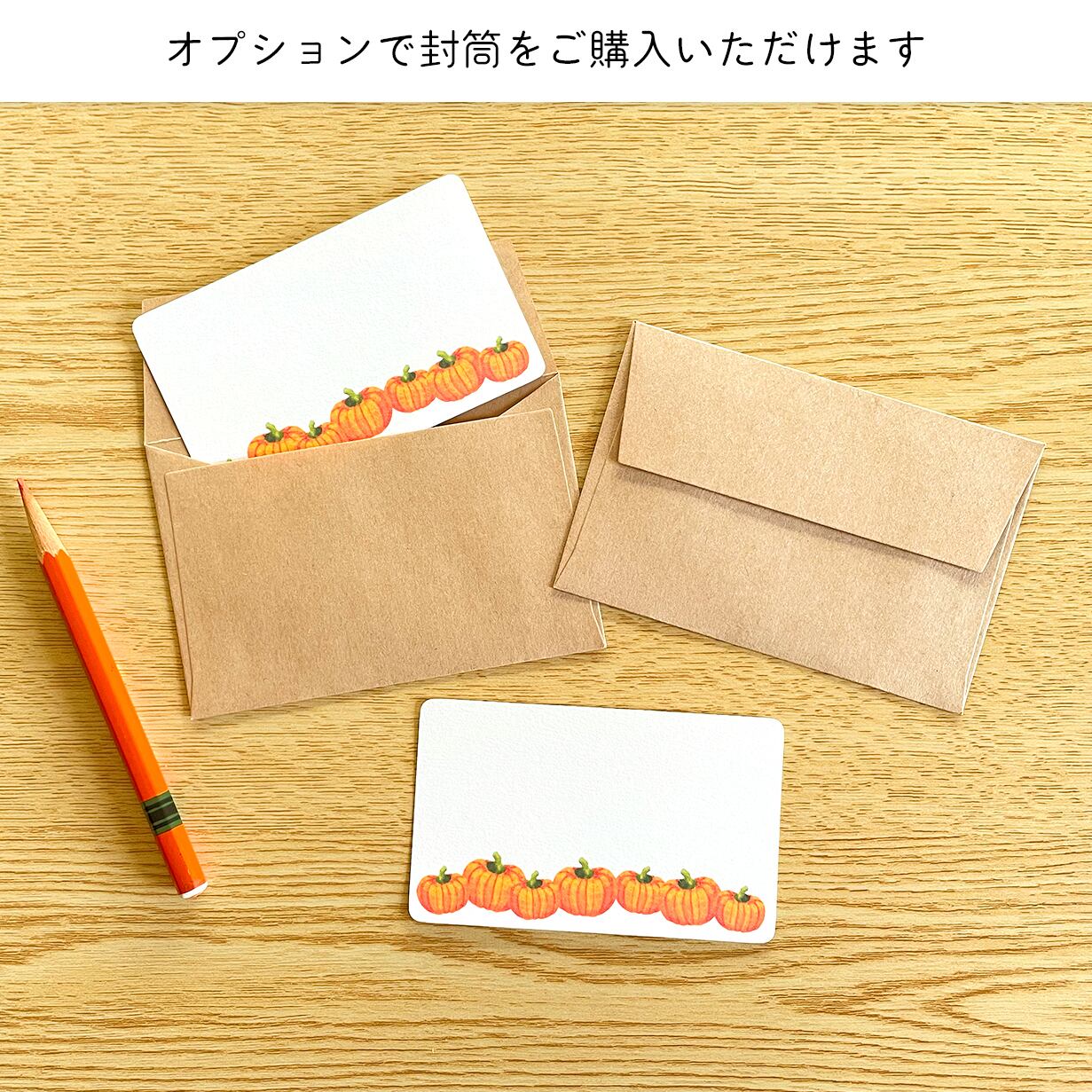 ふっくらと可愛らしい南瓜が並んだ名刺サイズのメッセージカードです。