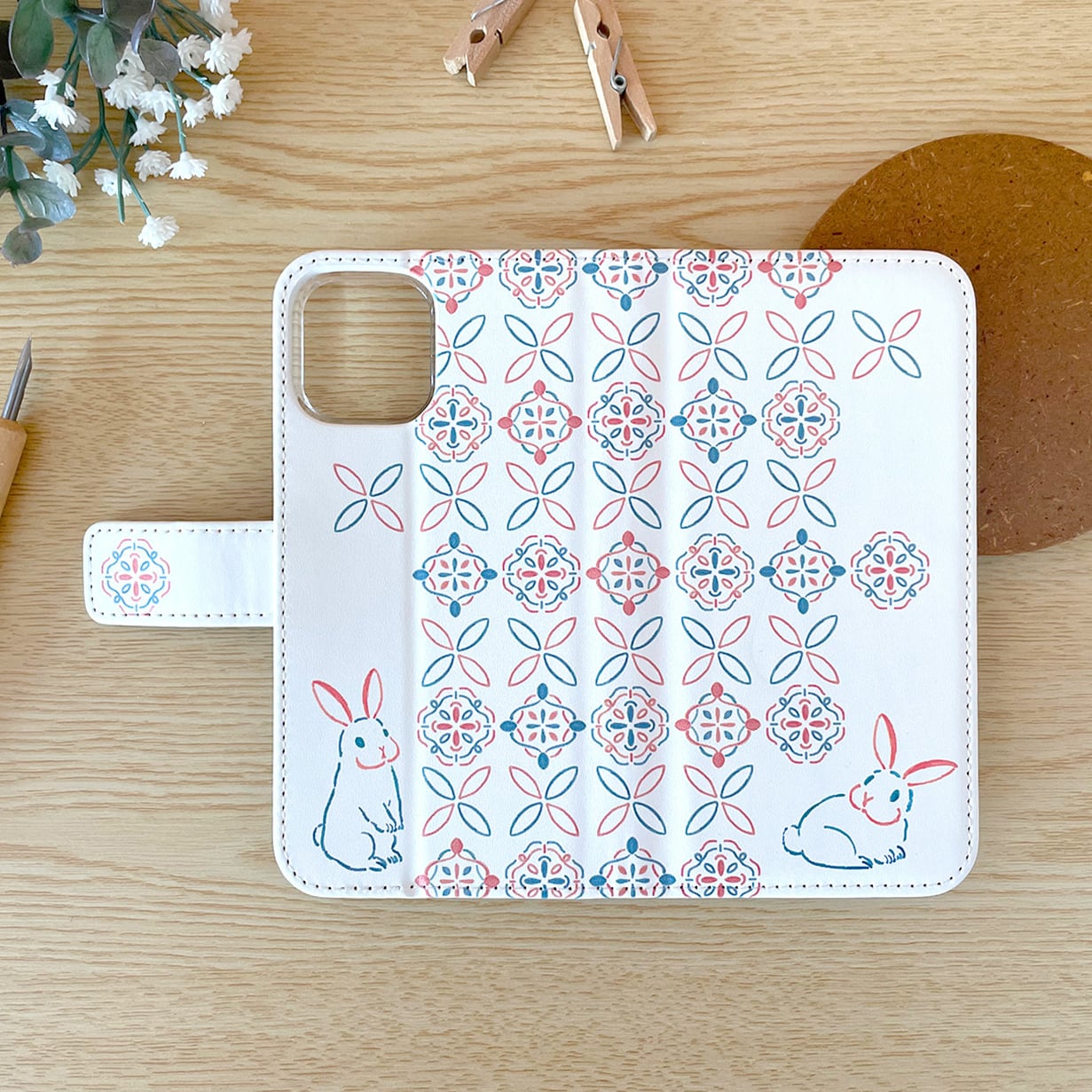 【受注制作品】白うさぎのiPhoneケース《Android対応》手帳型スマホケース 名入れ ギフト 動物 兎 おしゃれ