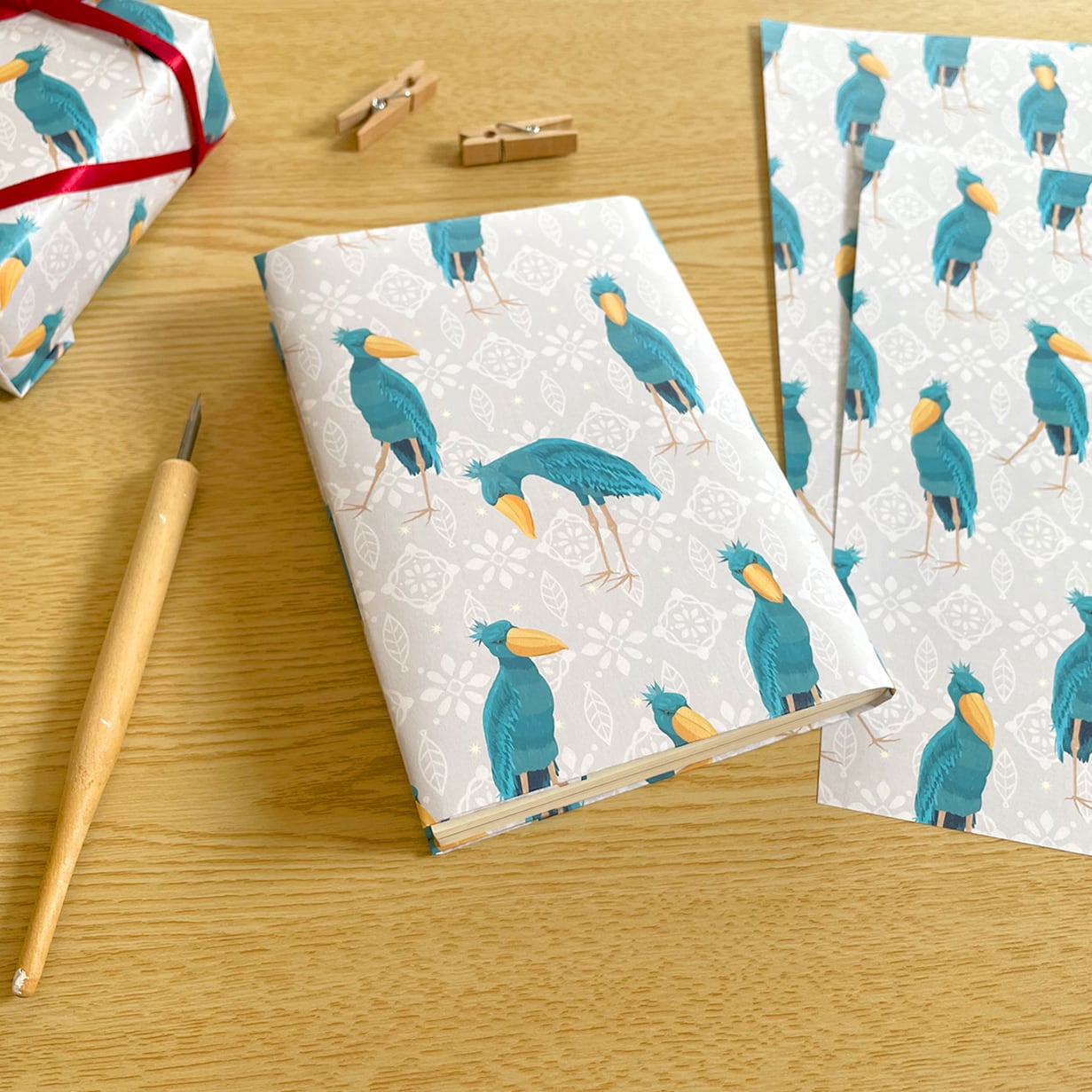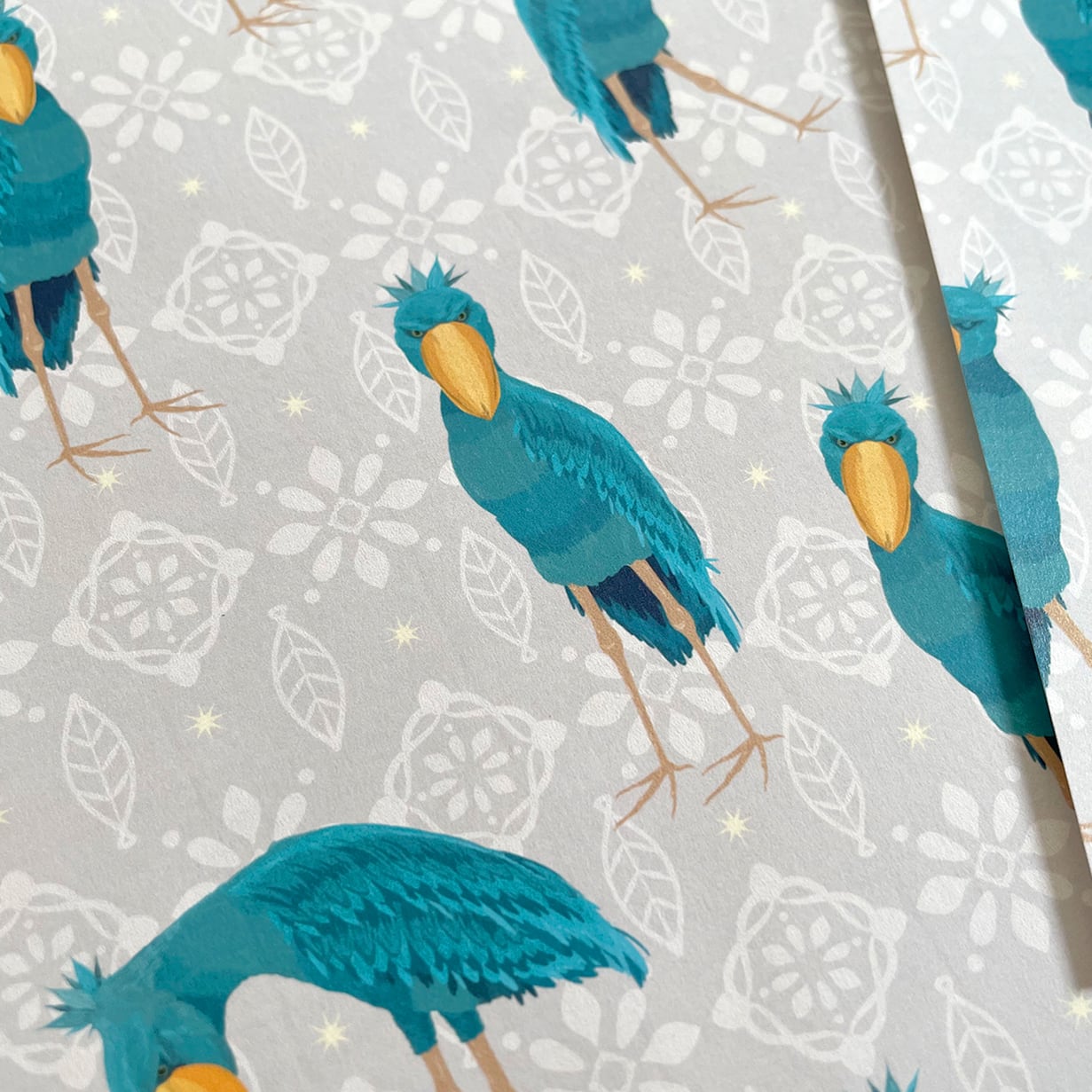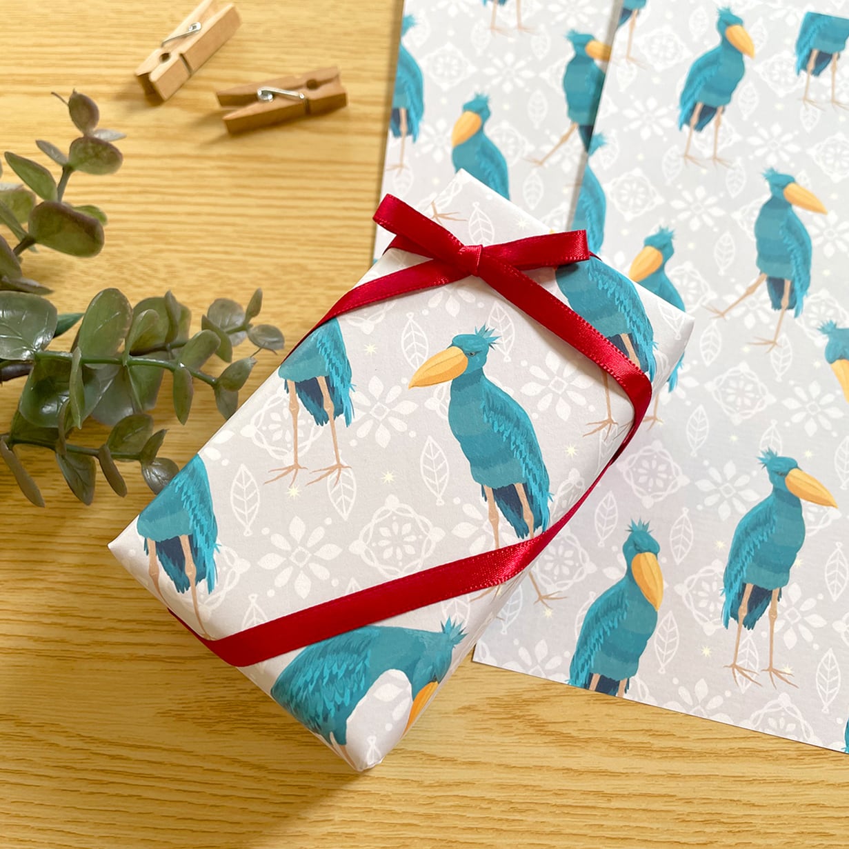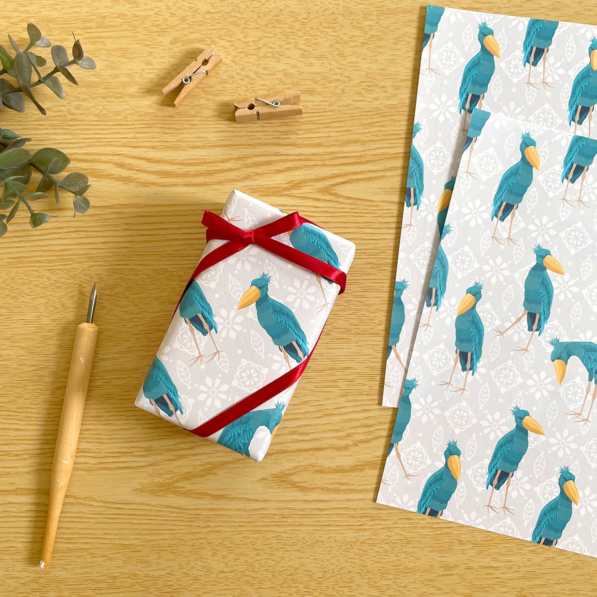 ハシビロコウの包装紙〈10枚入〉A4サイズ ラッピング デザインペーパー ブックカバー ギフト プレゼント 動物 鳥
