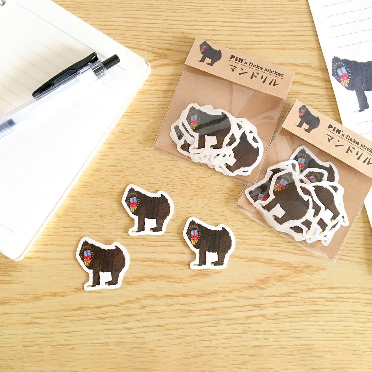 ちょっぴりシャクレた表情が可愛いマンドリルのフレークシールです。