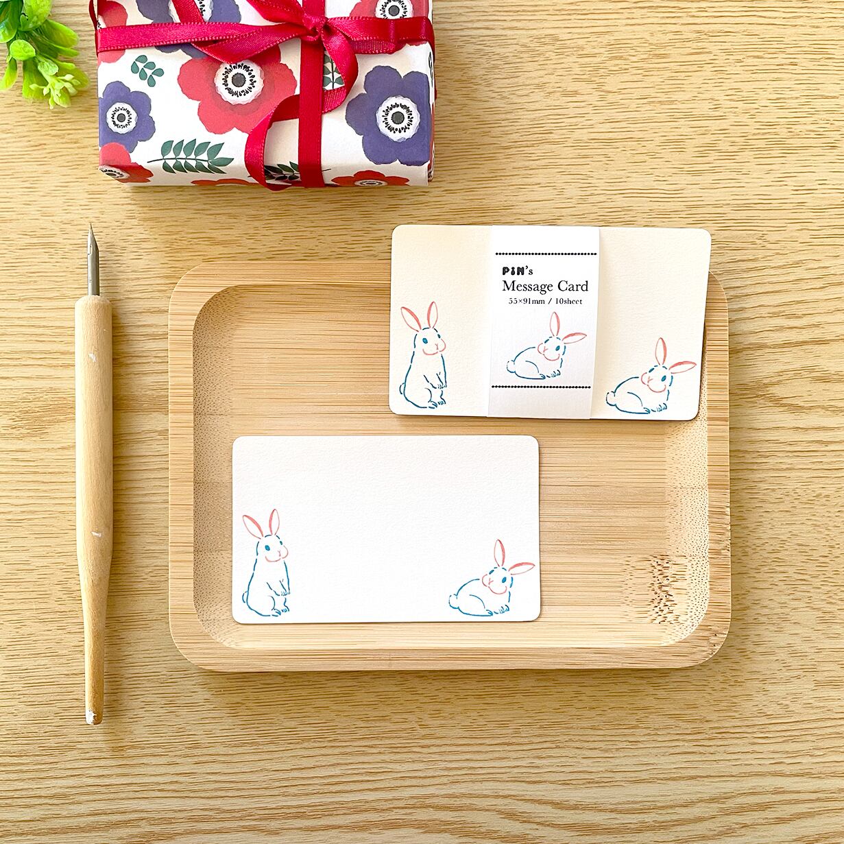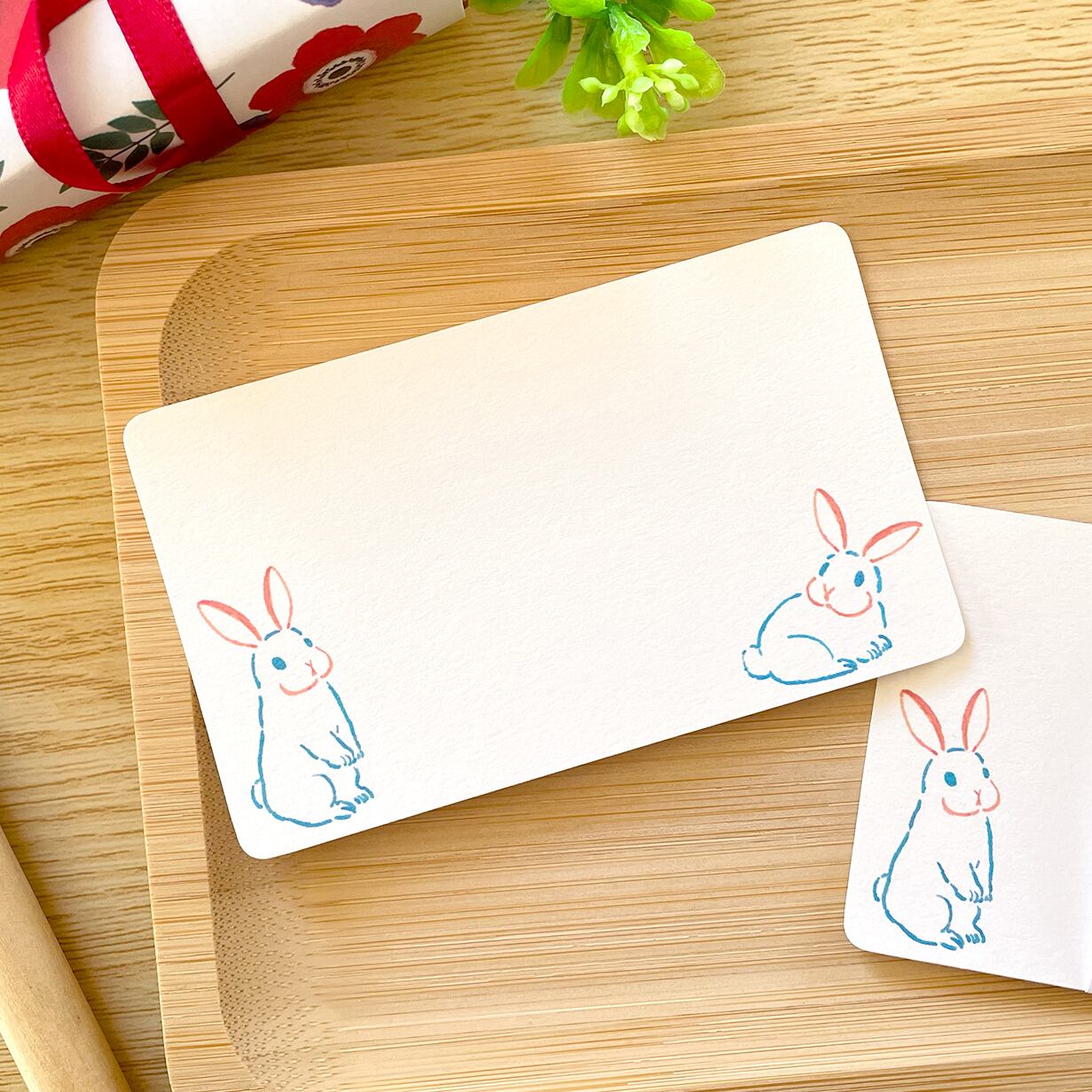 可愛らしいうさぎのイラストが入った名刺サイズのメッセージカードです。