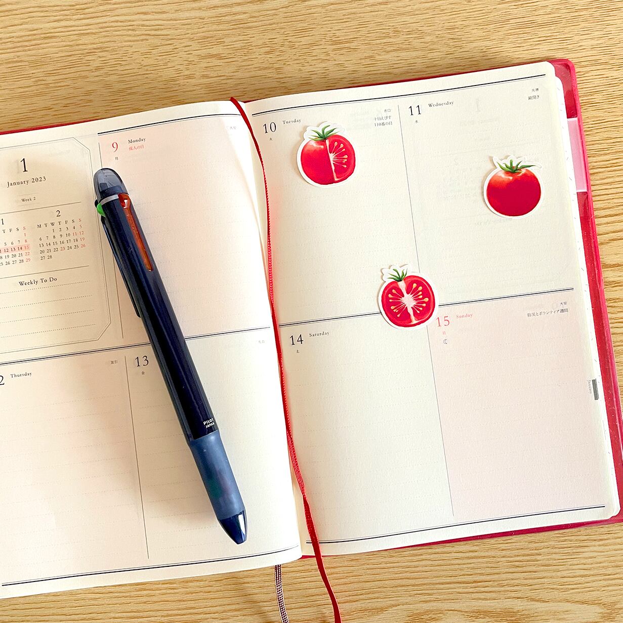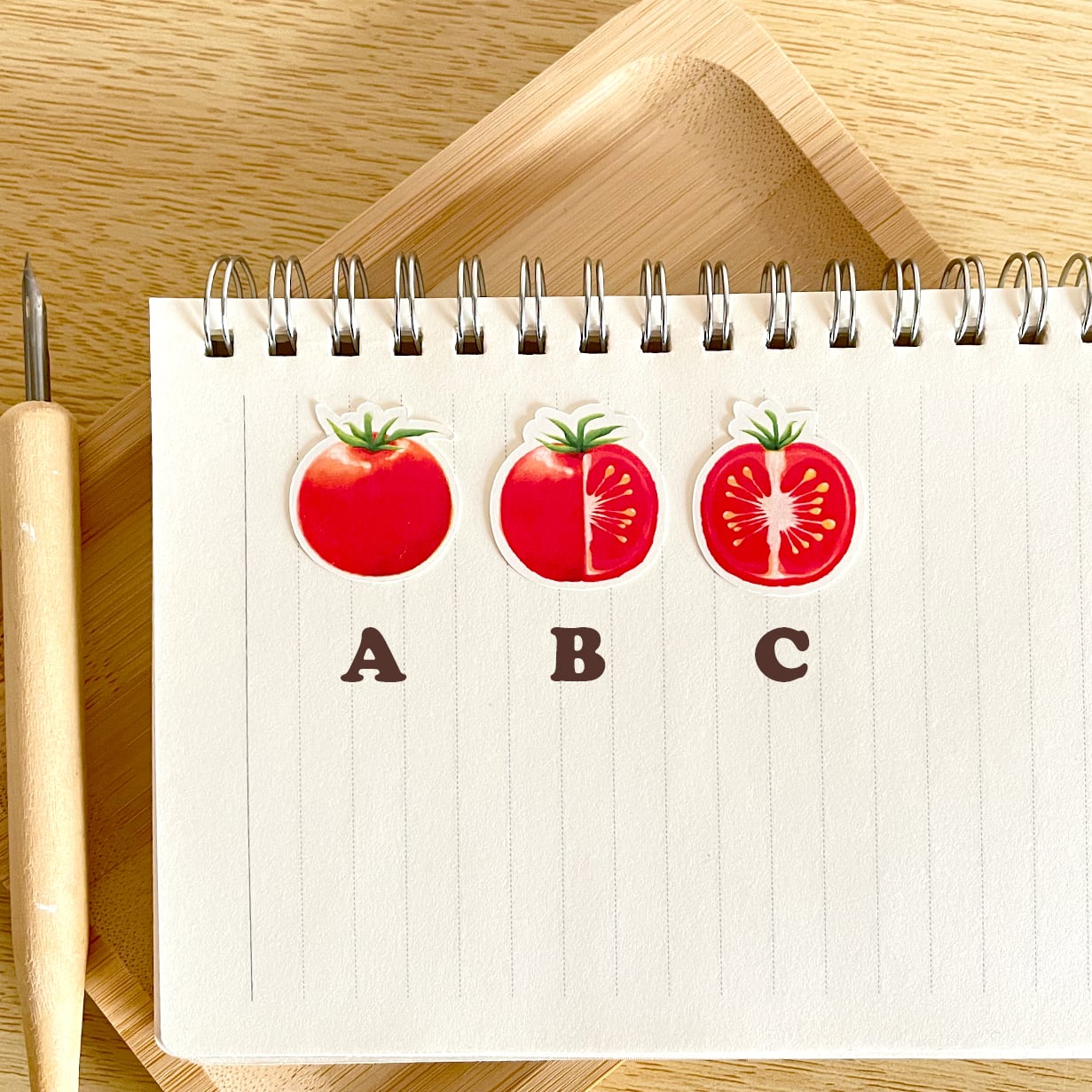 赤くて可愛らしいトマトのイラストがアクセントになり、色紙やメッセージカード、ラッピングのワンポイントにもぴったりです。
