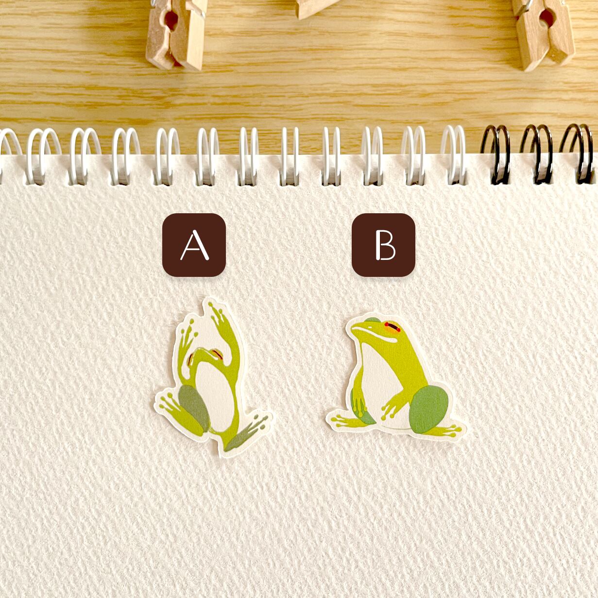 可愛らしいアマガエルをほどよくリアルに描いたフレークシールです。