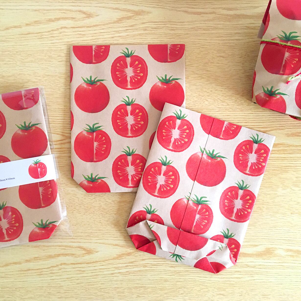 彩り鮮やかなトマトが並んだ可愛らしい紙袋で、贈り物を入れて封をするだけで素敵なプレゼントに。