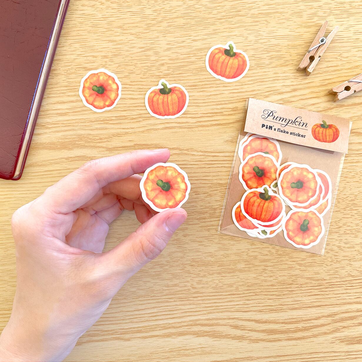 ふっくら可愛いかぼちゃの実を描いたフレークシールです。