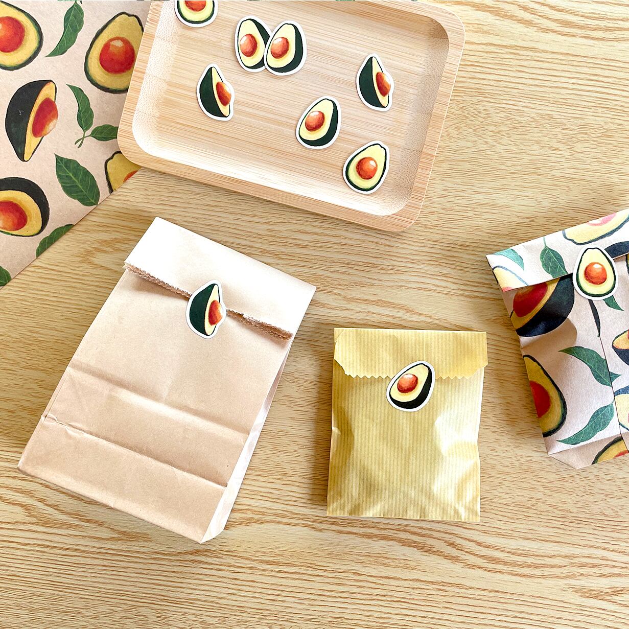 ちょっと珍しいアボカドのシールがアクセントになり、色紙やメッセージカード、ラッピングのワンポイントにもぴったりです。