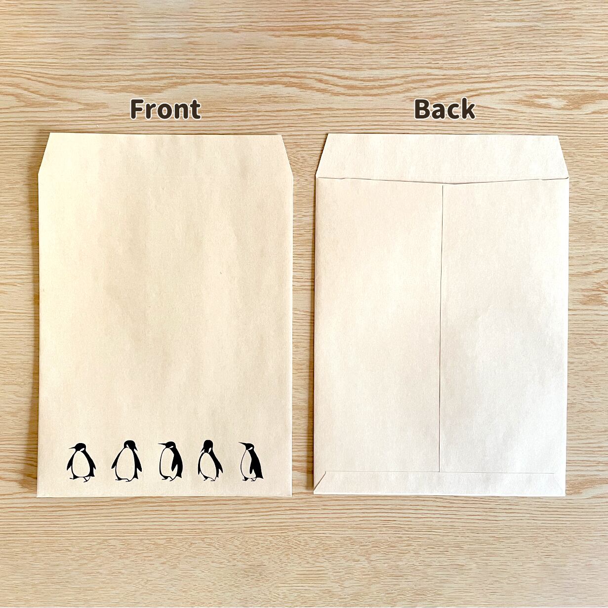 クラフト紙の素朴な風合いと、ペンギンのイラストの絶妙なゆるさが相まって、ちょっとしたお便りや贈り物に、くすっと笑えるアクセントを添えてくれます。