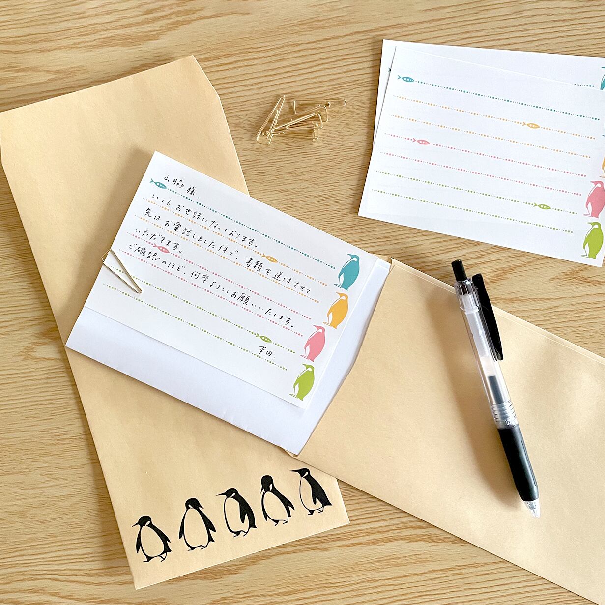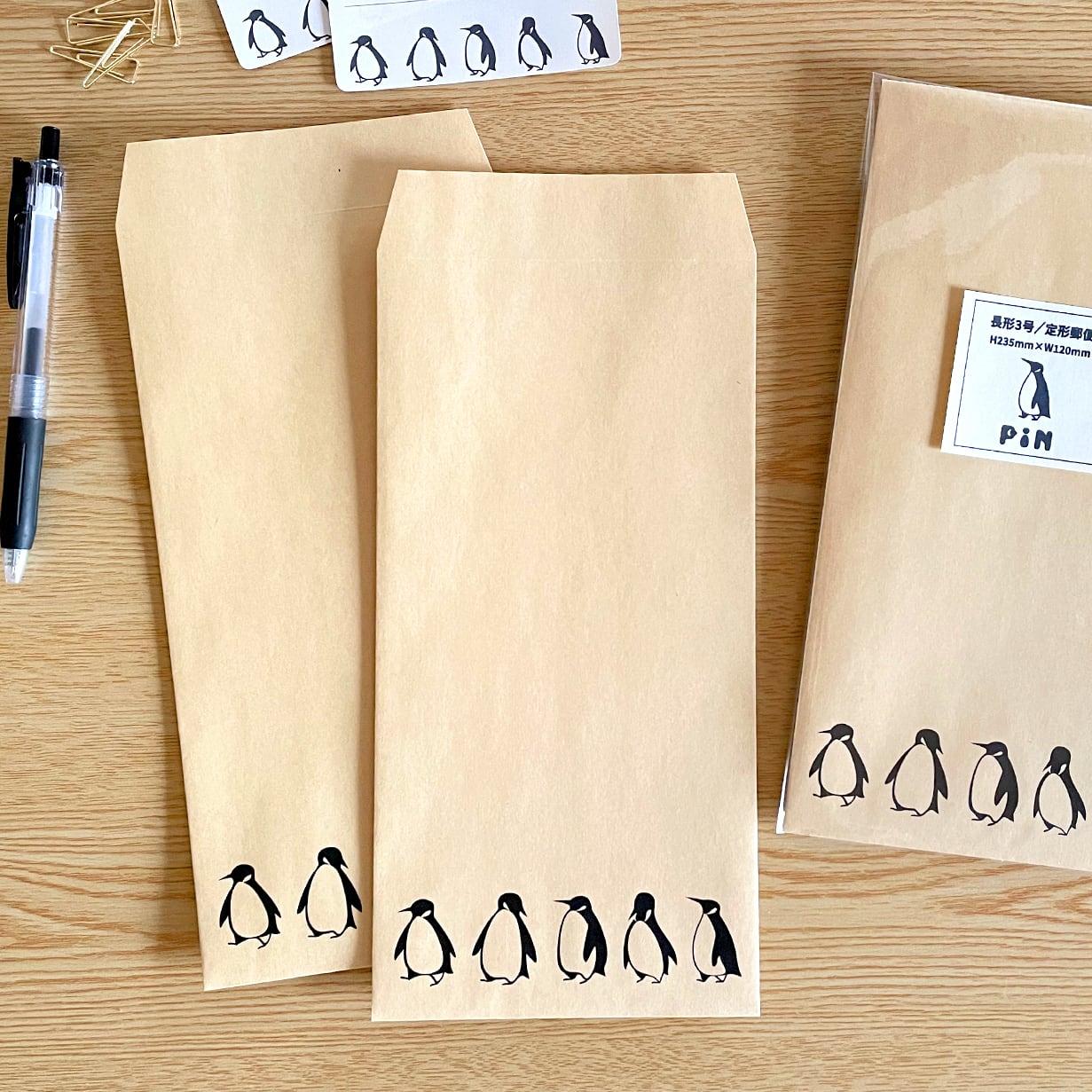 トコトコ歩くペンギンが可愛らしい長3封筒です。