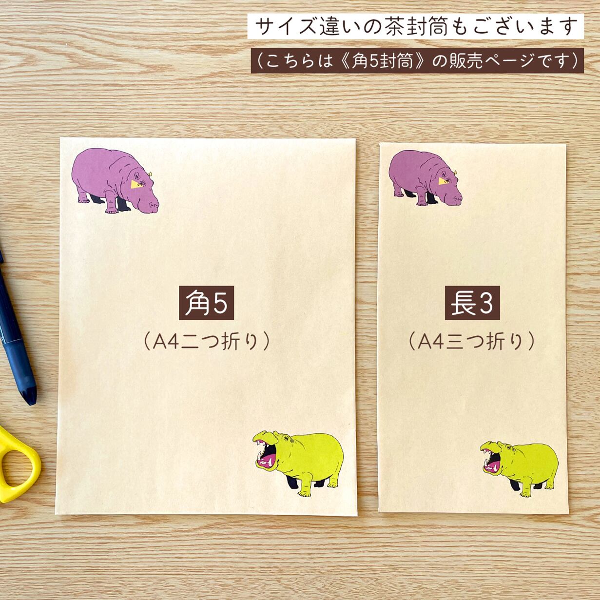 ふたつの表情を楽しめる、ユーモラスなカバの角5封筒です。