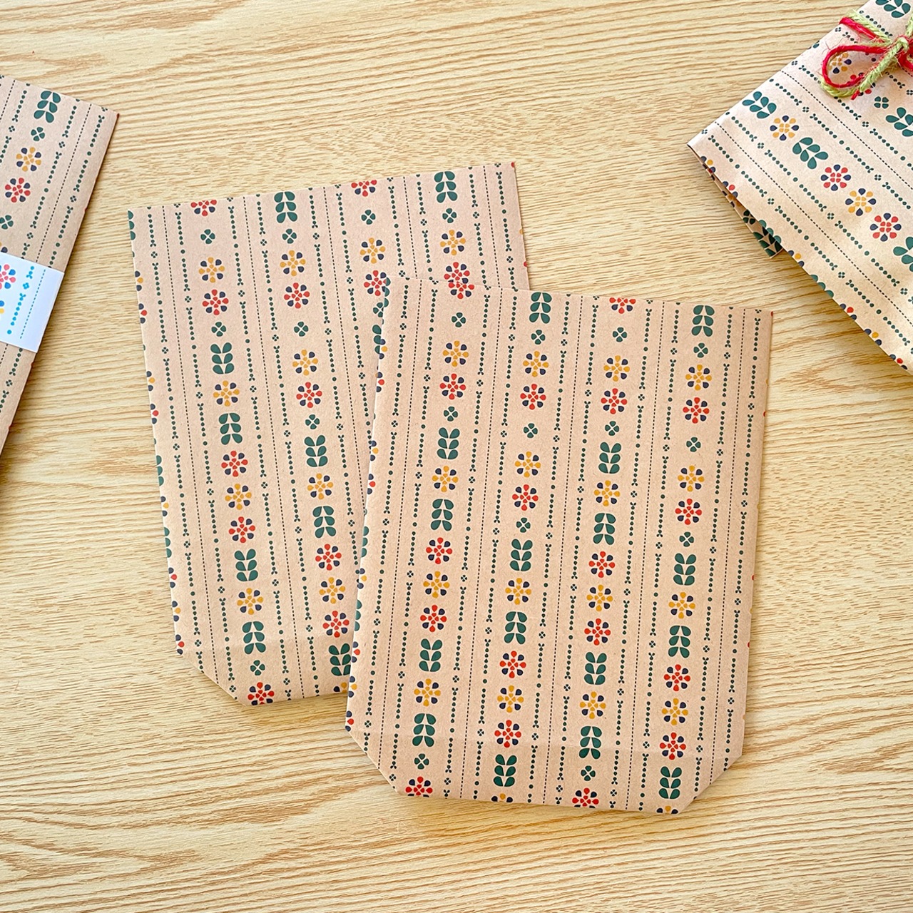 北欧風のお花のラインが彩る可愛らしい紙袋で、贈り物を入れて封をするだけで素敵なプレゼントに。