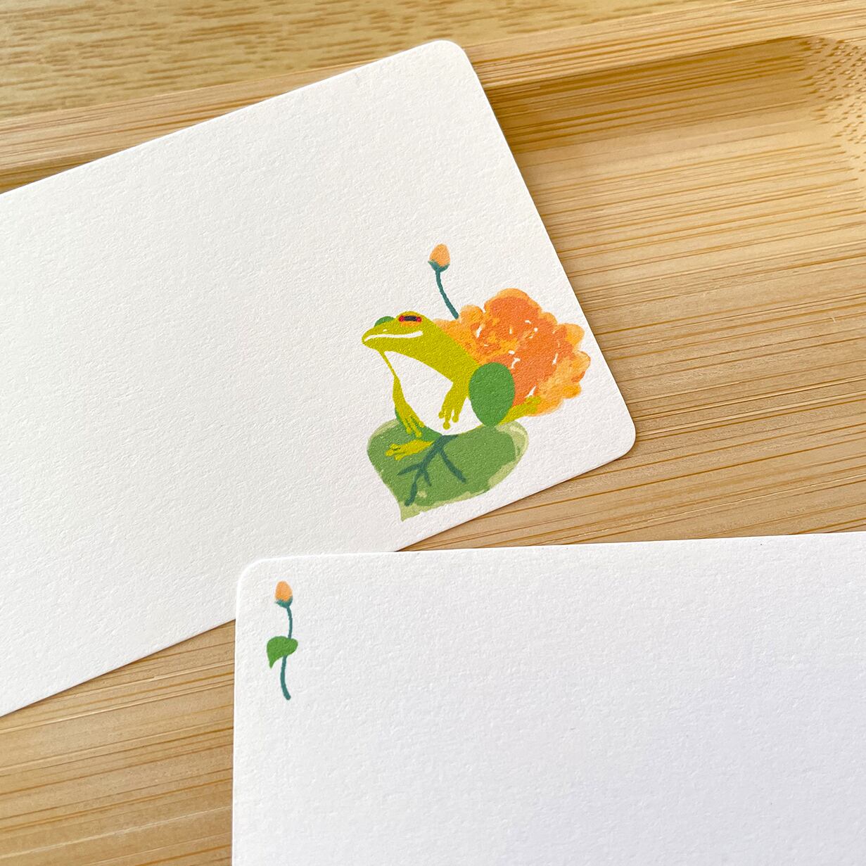 可愛らしいカエルのイラストが入った名刺サイズのメッセージカードです。