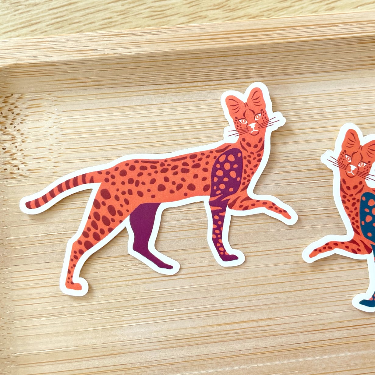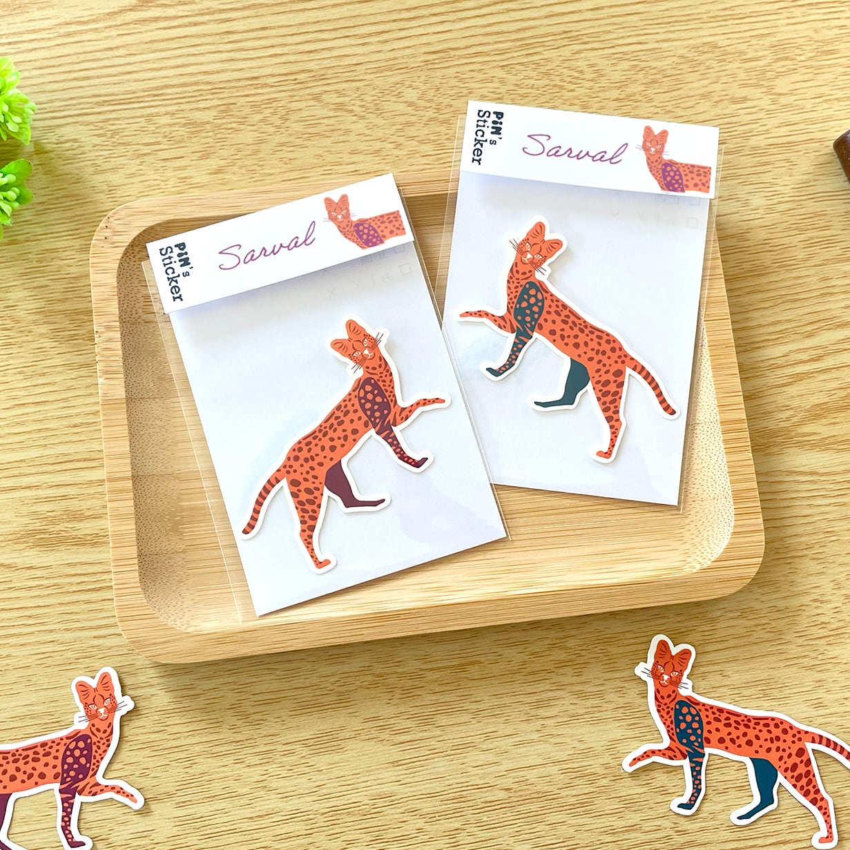 斑点模様とスマートなシルエットが美しいサーバルの姿をイラストに落とし込み、大人も使いやすいおしゃれなステッカーに仕上げました。