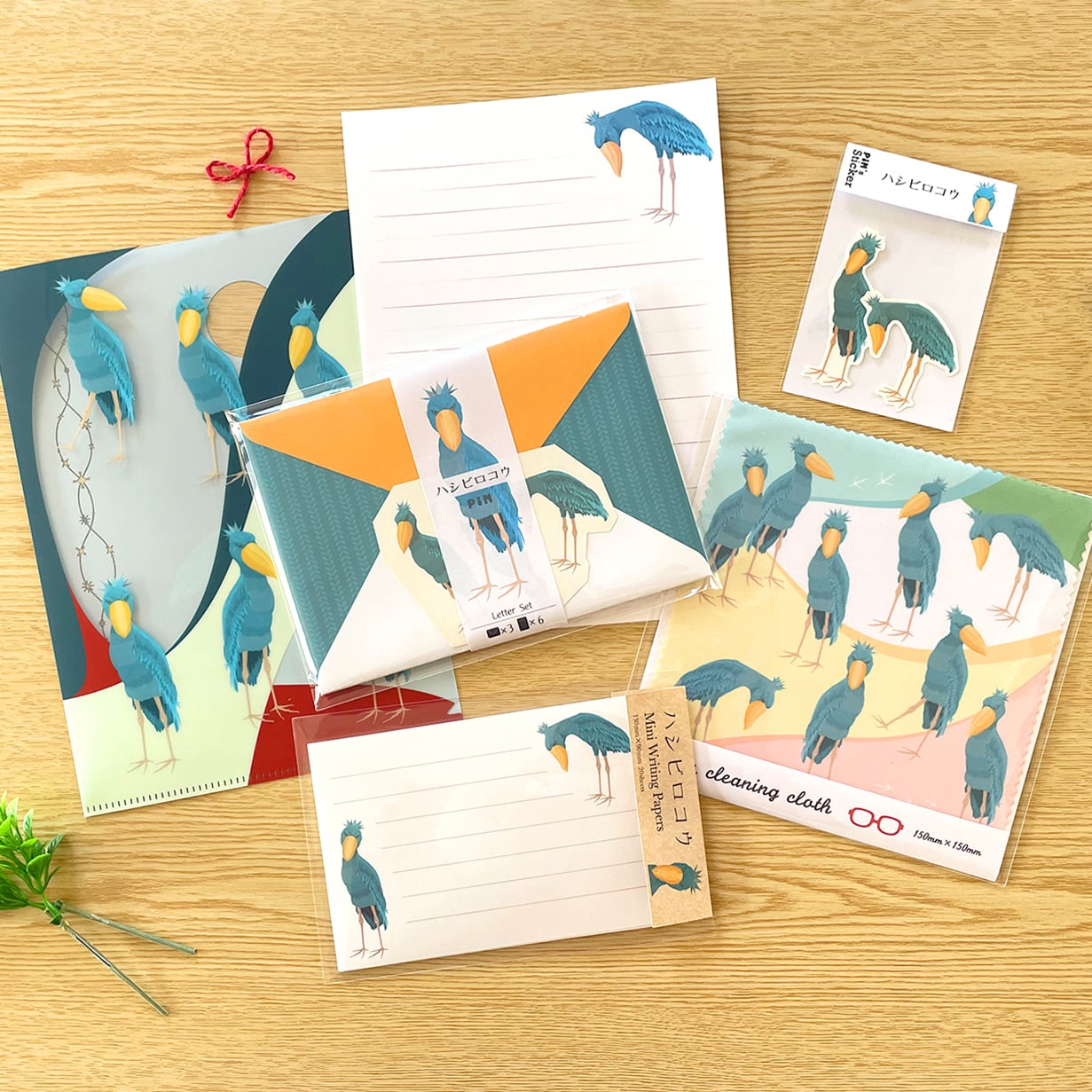 普段使いできるクリアファイルや一筆箋、ふと目に入るだけで気分が上がるステッカーやメガネ拭きなど、可愛らしいハシビロコウの姿をたっぷり楽しめます。