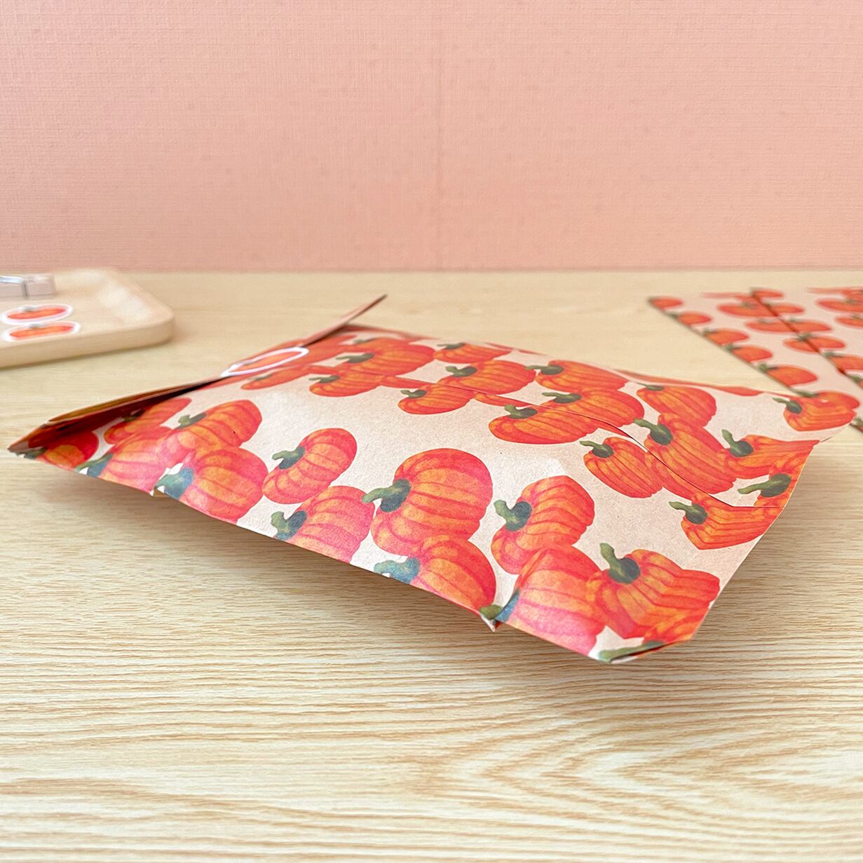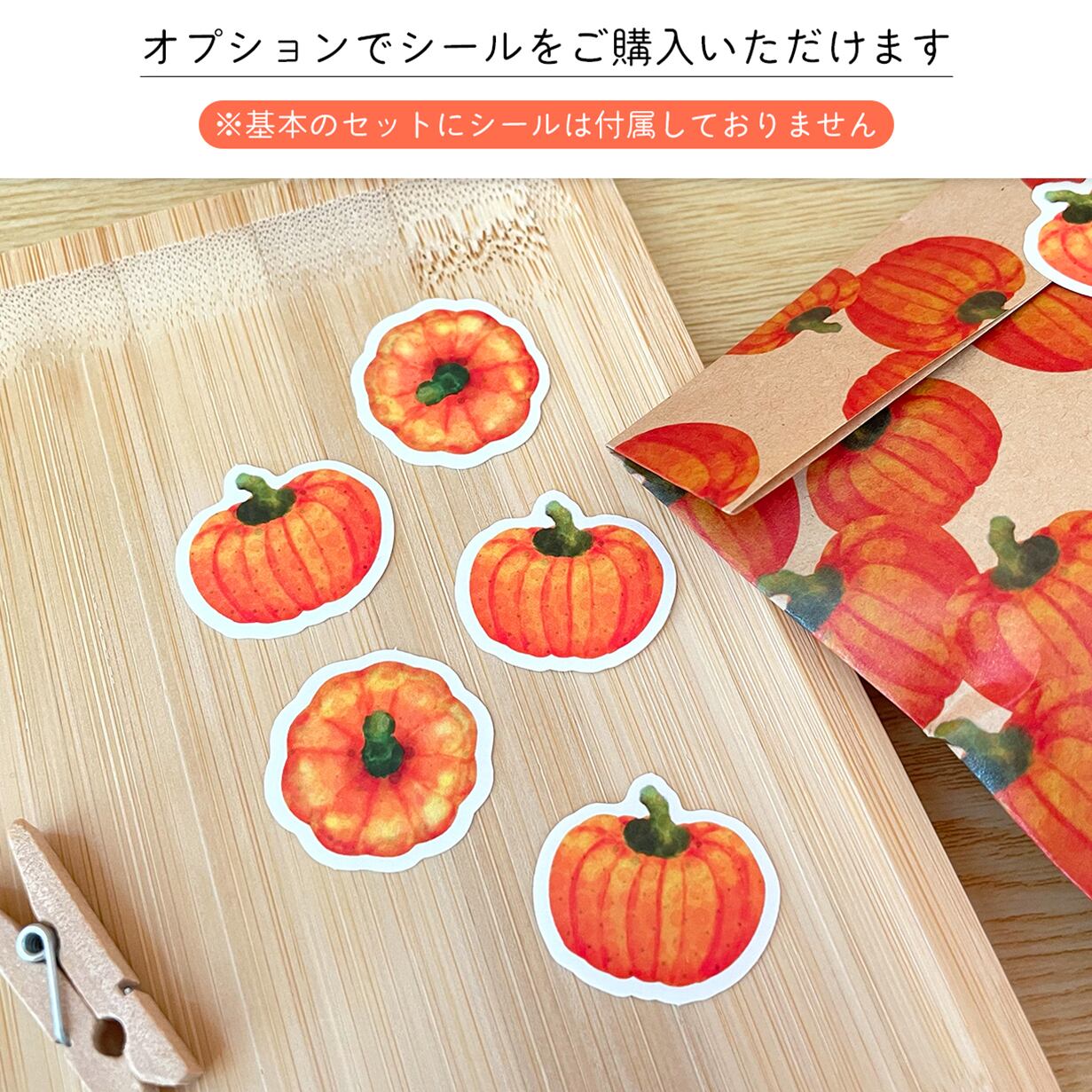 写真にございますかぼちゃのシールをオプションでご購入いただけます。