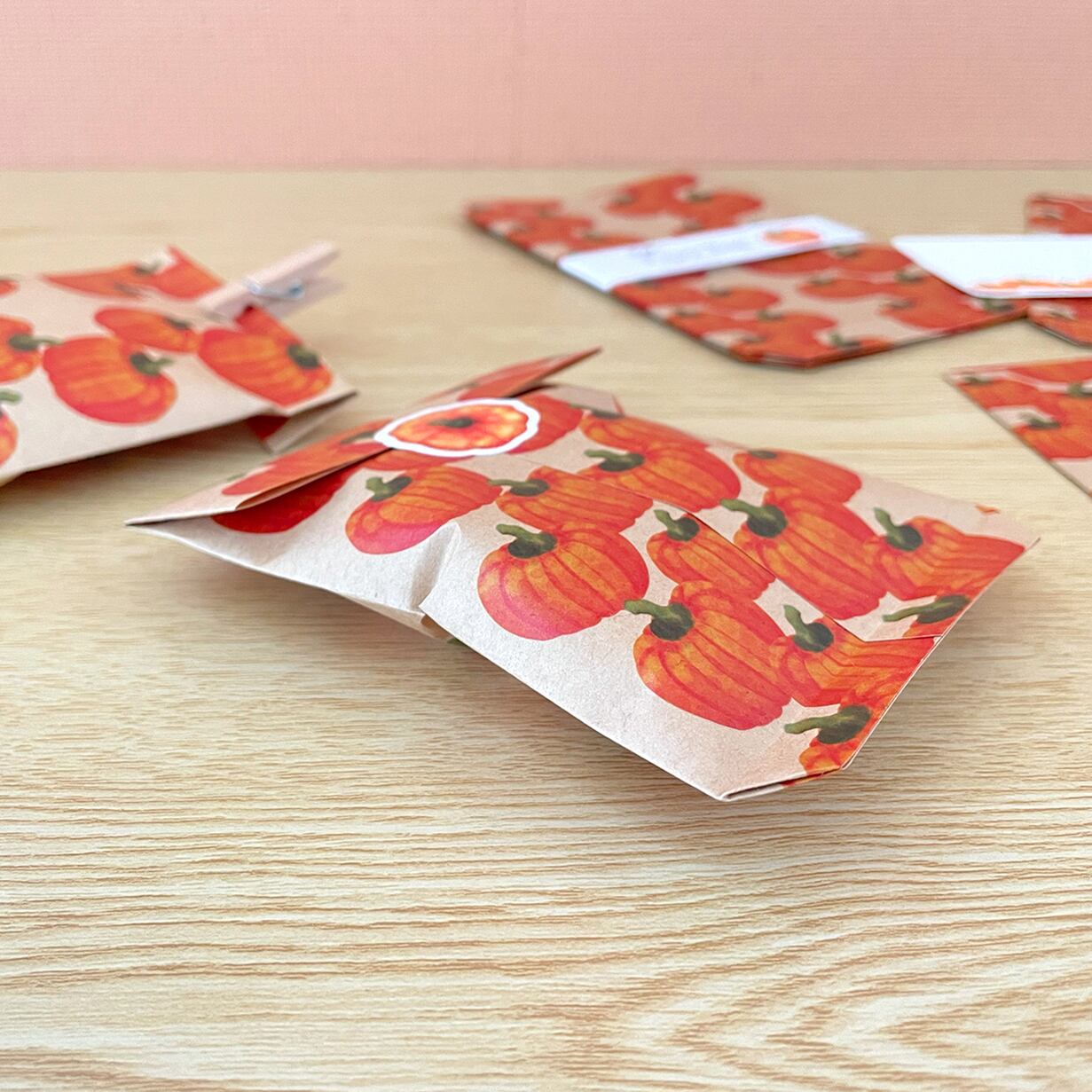 カントリー風のかぼちゃ柄のデザインで、贈り物を入れるだけでおしゃれなギフトに仕上がります。