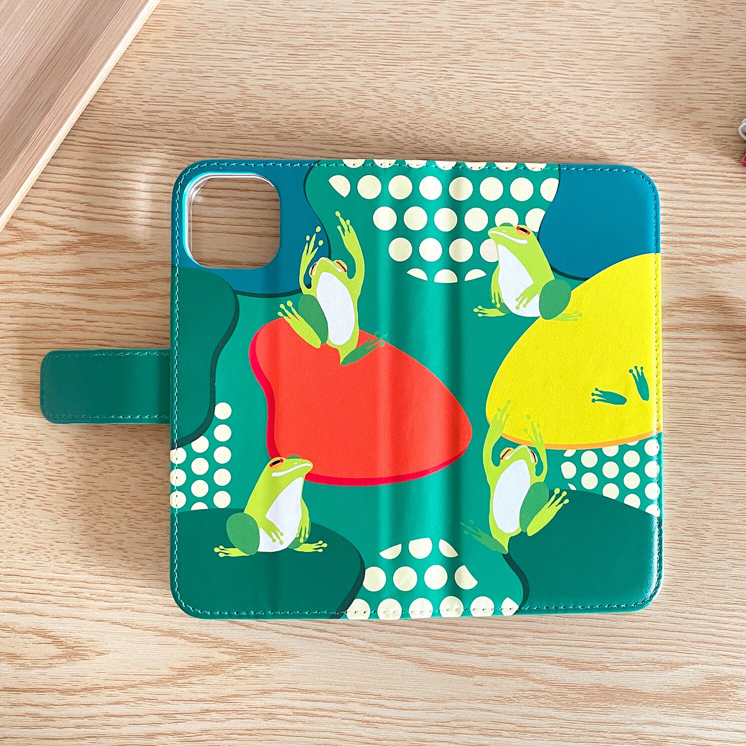可愛らしいアマガエルの姿をおしゃれに楽しめるスマホケースです。