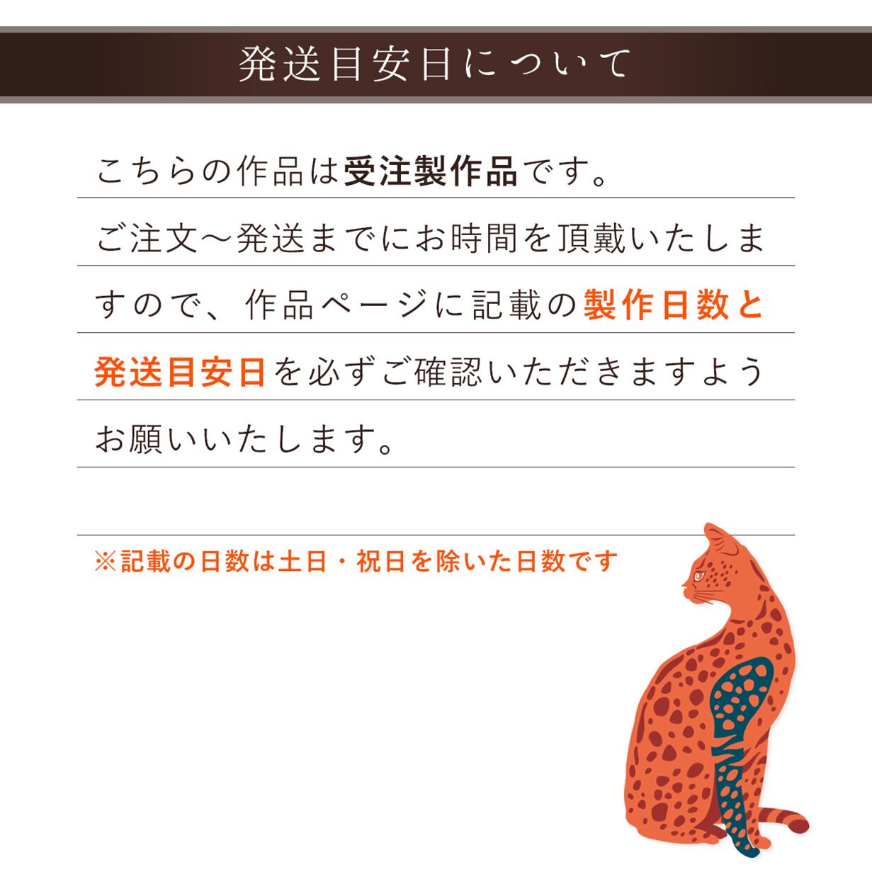 ◇ 受注製作品とその他の商品を同じカートで購入されました場合、受注製作品の発送予定日が優先となります。お急ぎの商品がございましたらカートを分けてご購入ください。