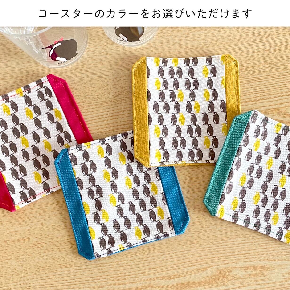 明るいカラーリングのペンギンコースター付きで、テーブルの上が華やぎます。