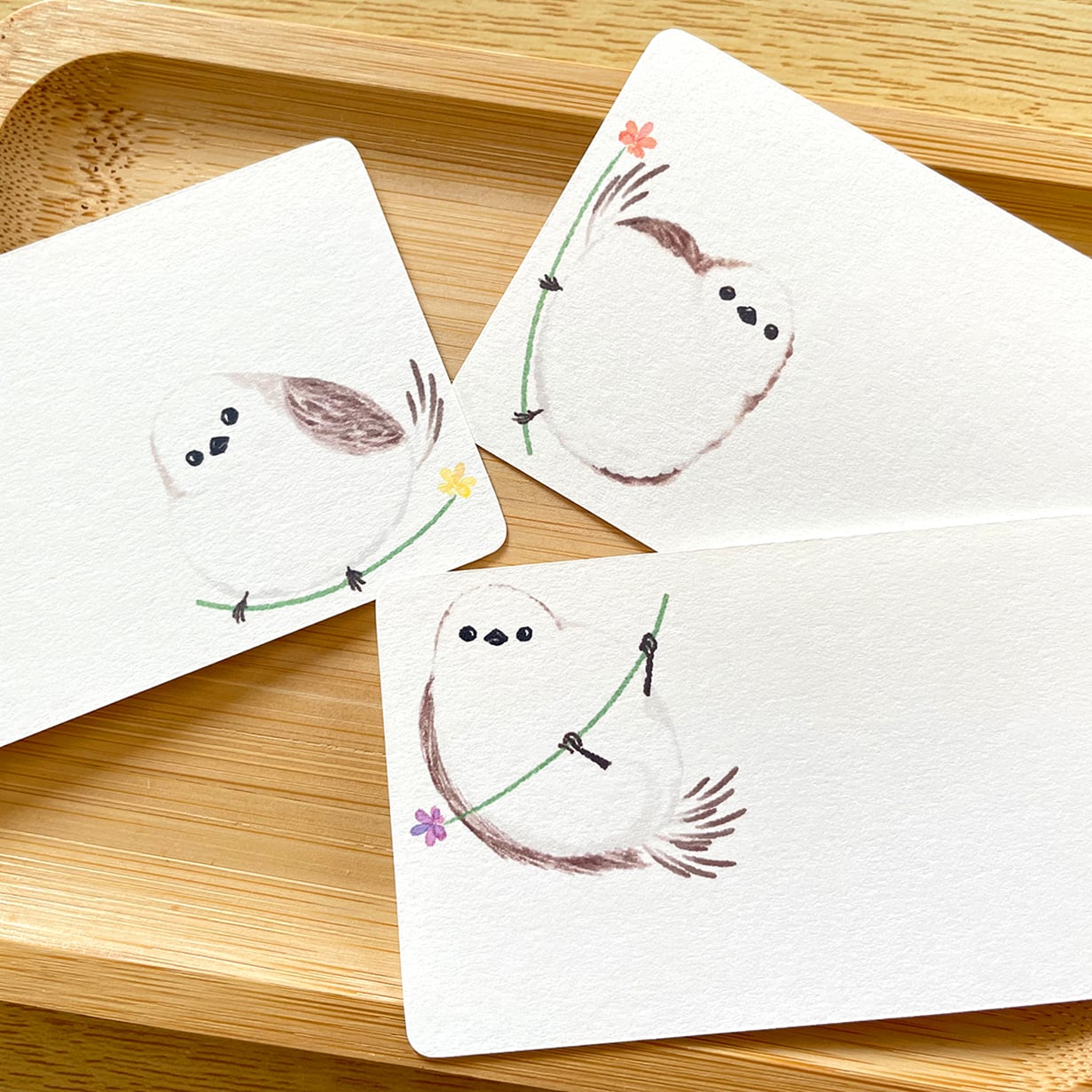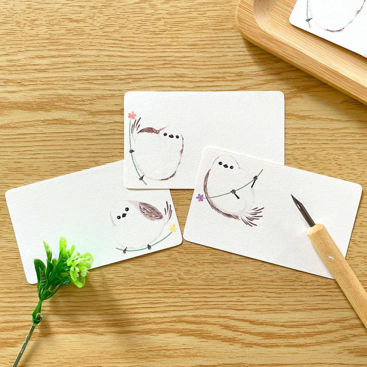 可愛らしいシマエナガのイラストが入った名刺サイズのメッセージカードです。