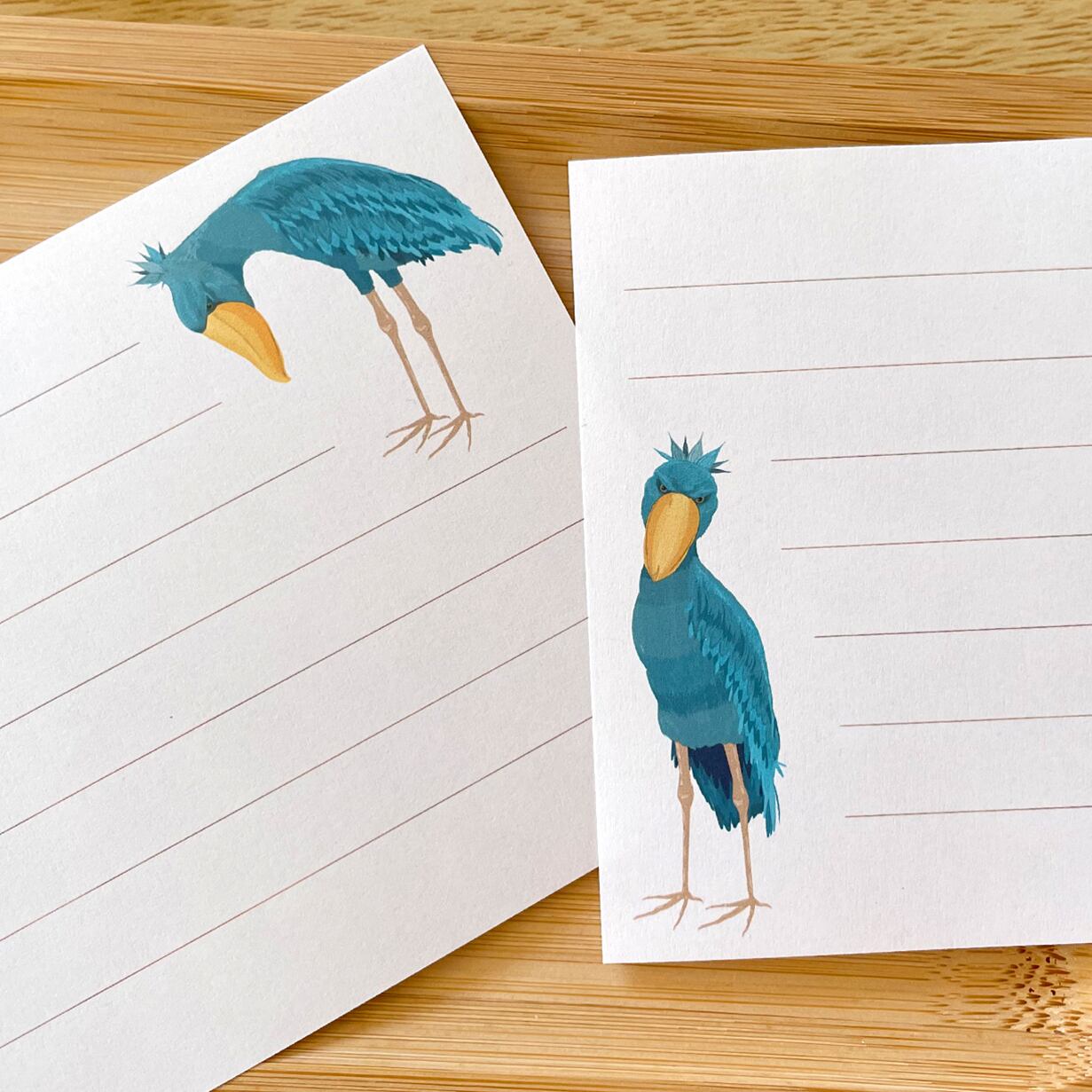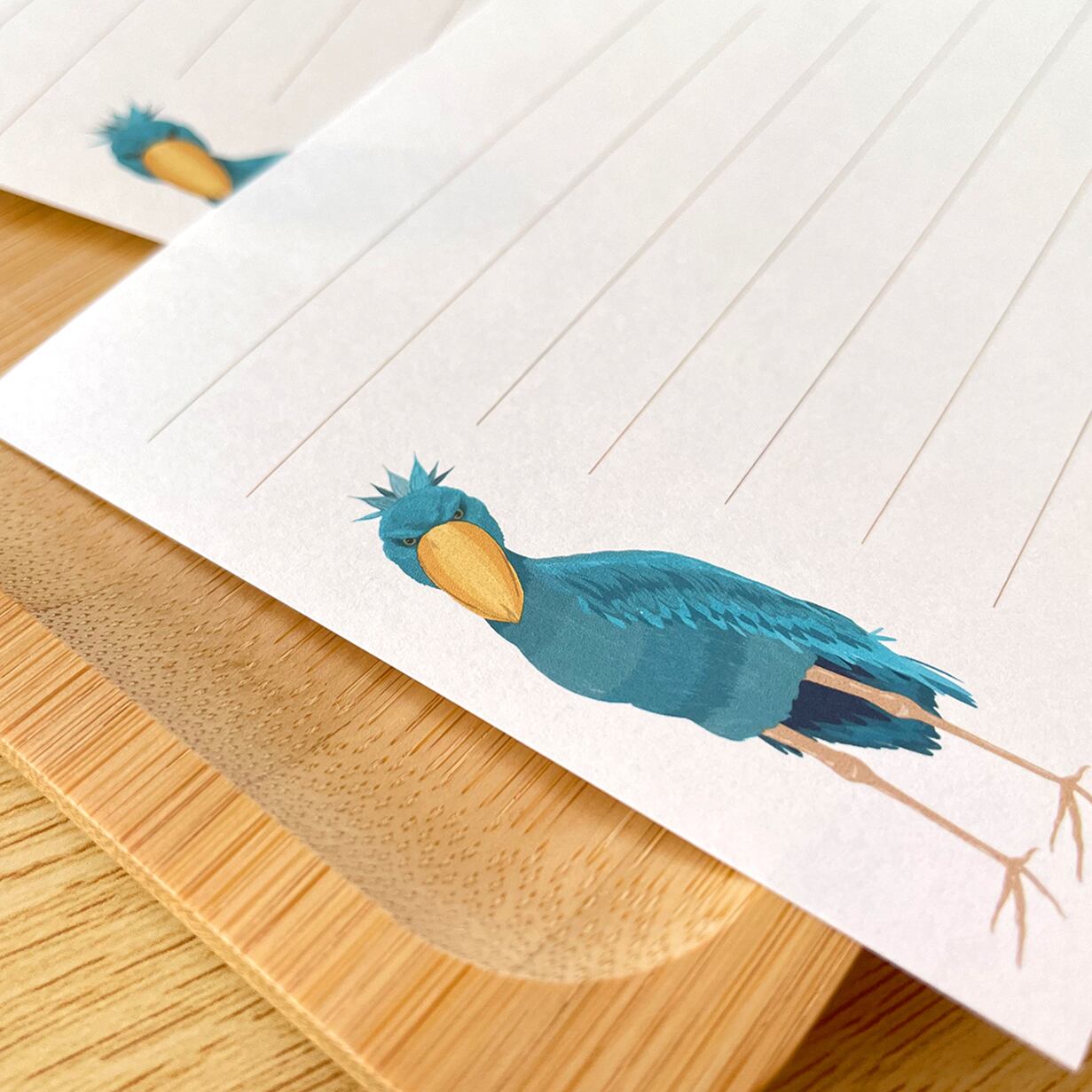 インパクト抜群のハシビロコウのイラストが入ったお手紙で、受け取った方も明るい気持ちに。