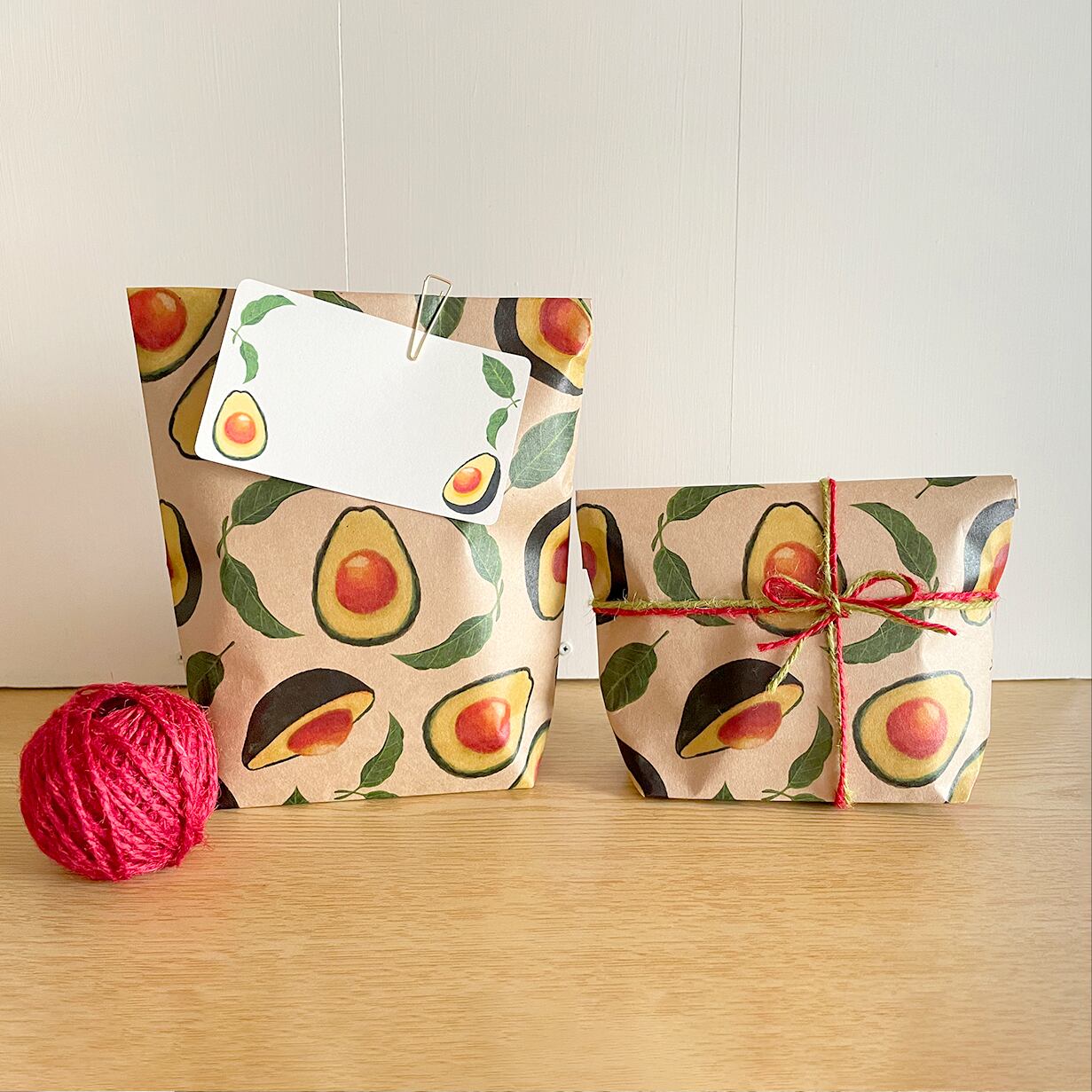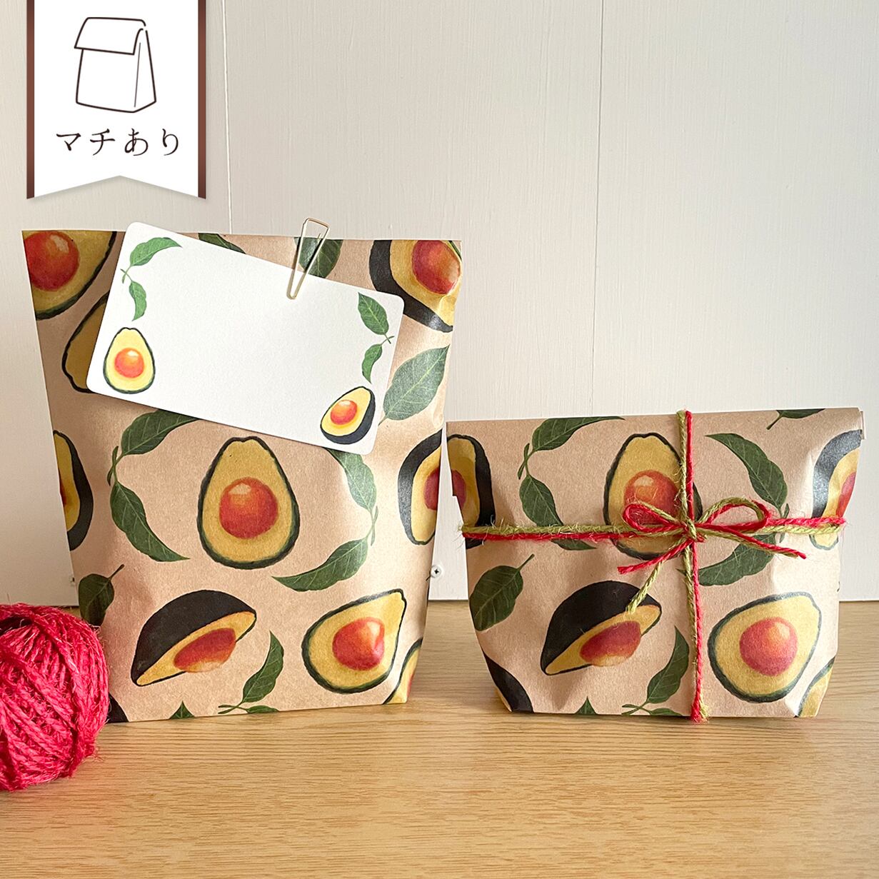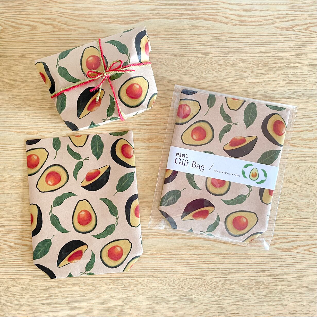 可愛らしいアボカド柄の紙袋で、贈り物を入れて封をするだけで素敵なプレゼントに。