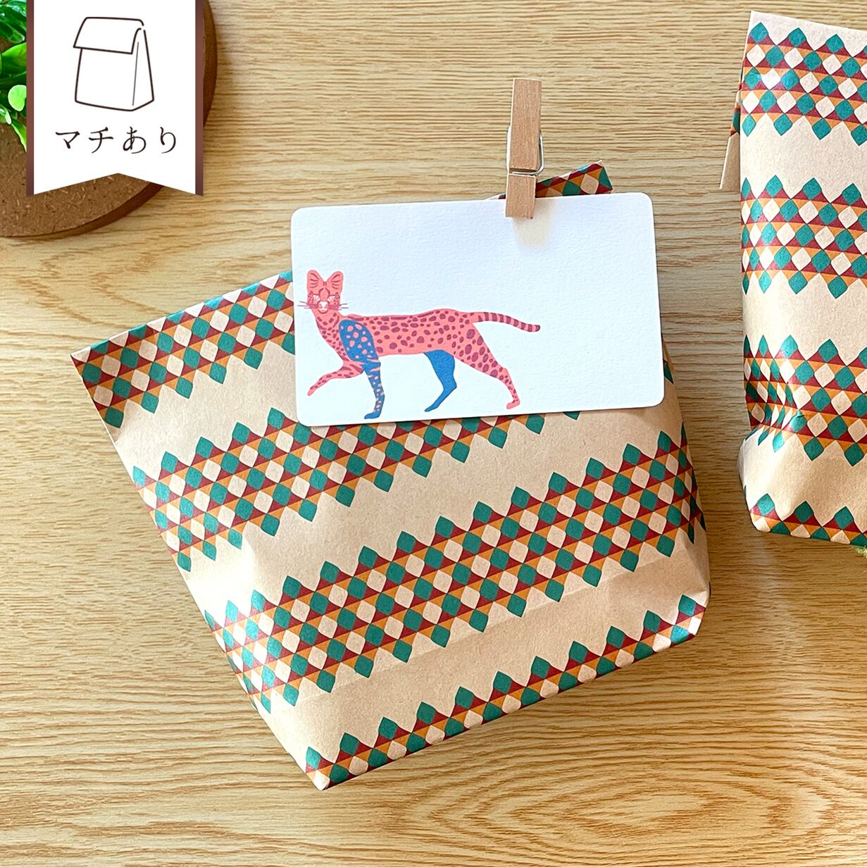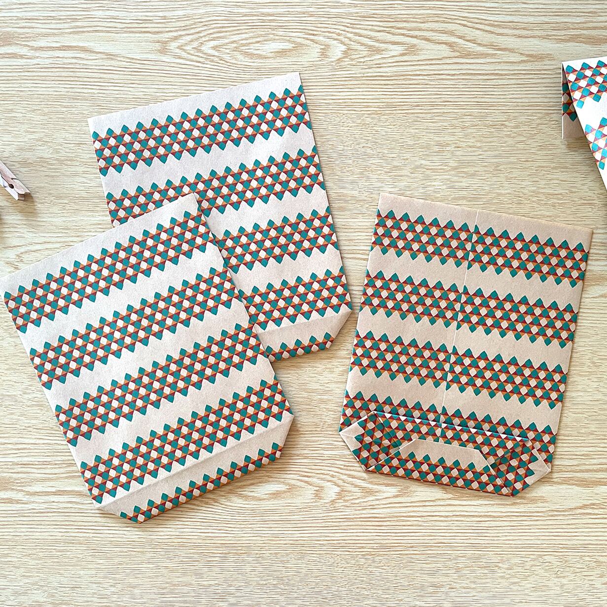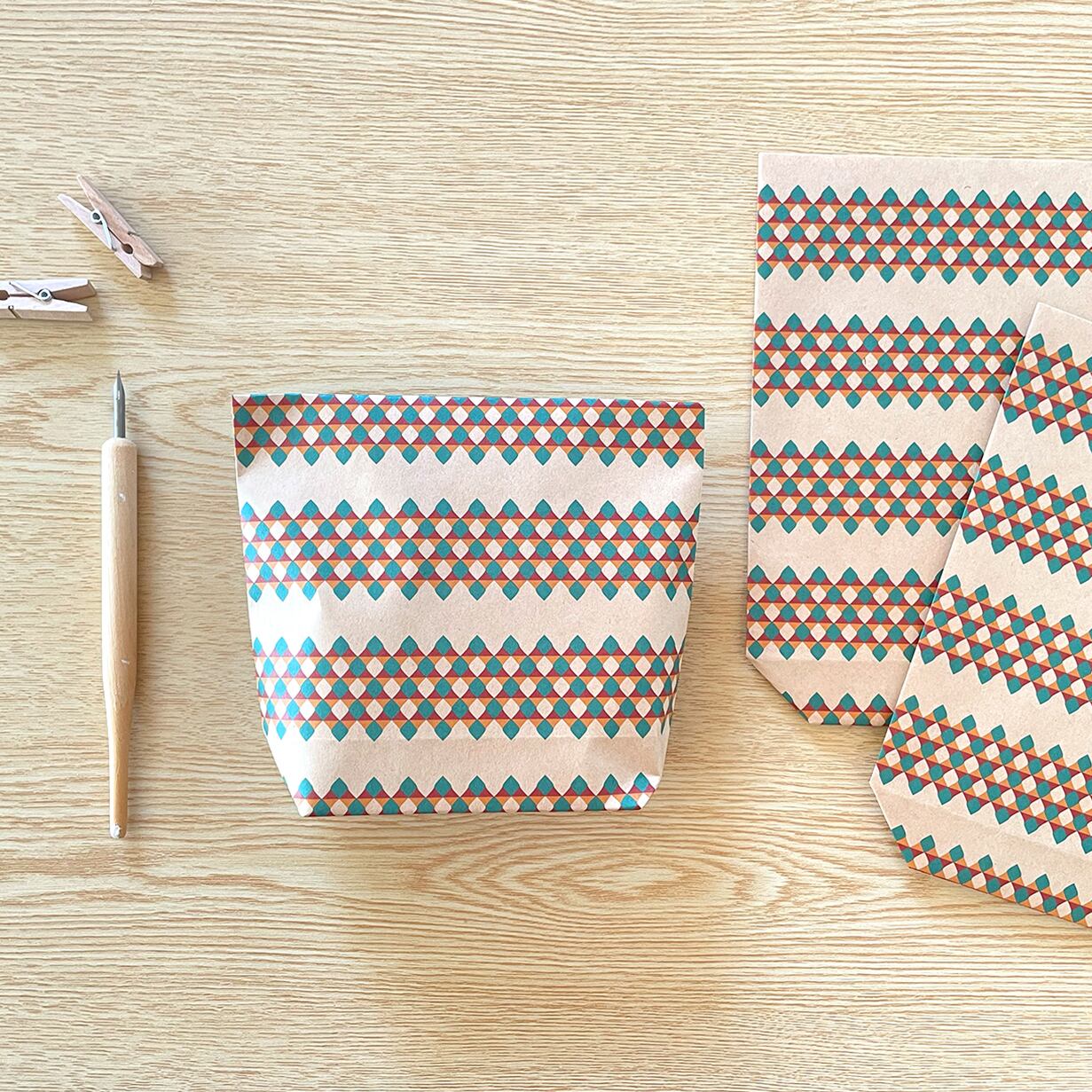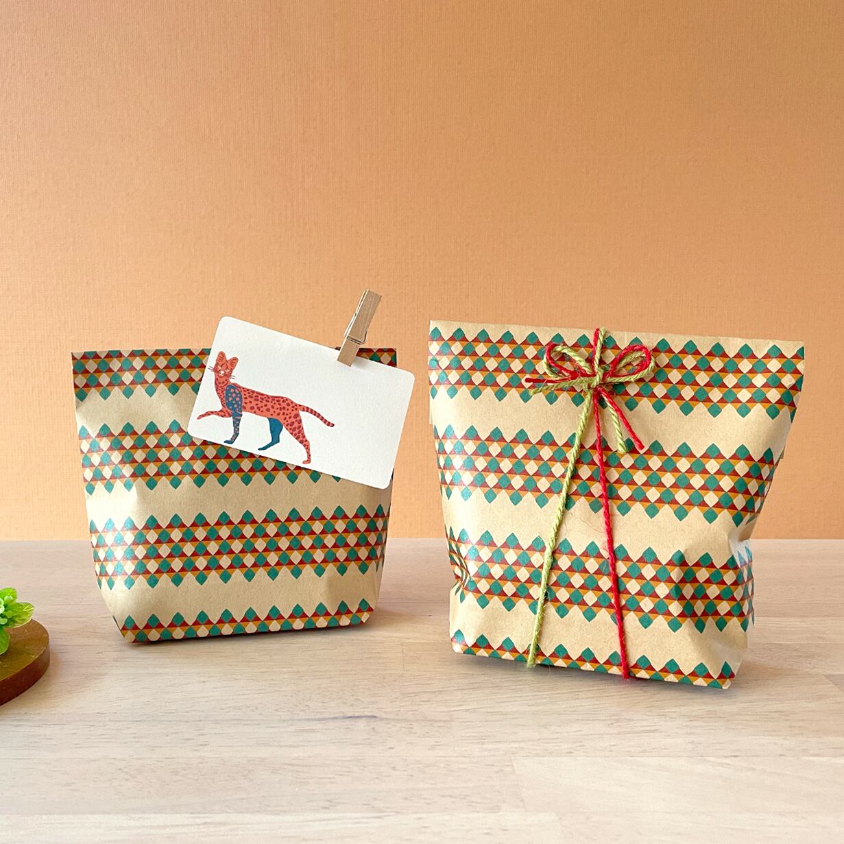 小物のラッピングにちょうどいい、おしゃれな幾何学模様のギフトバッグです。