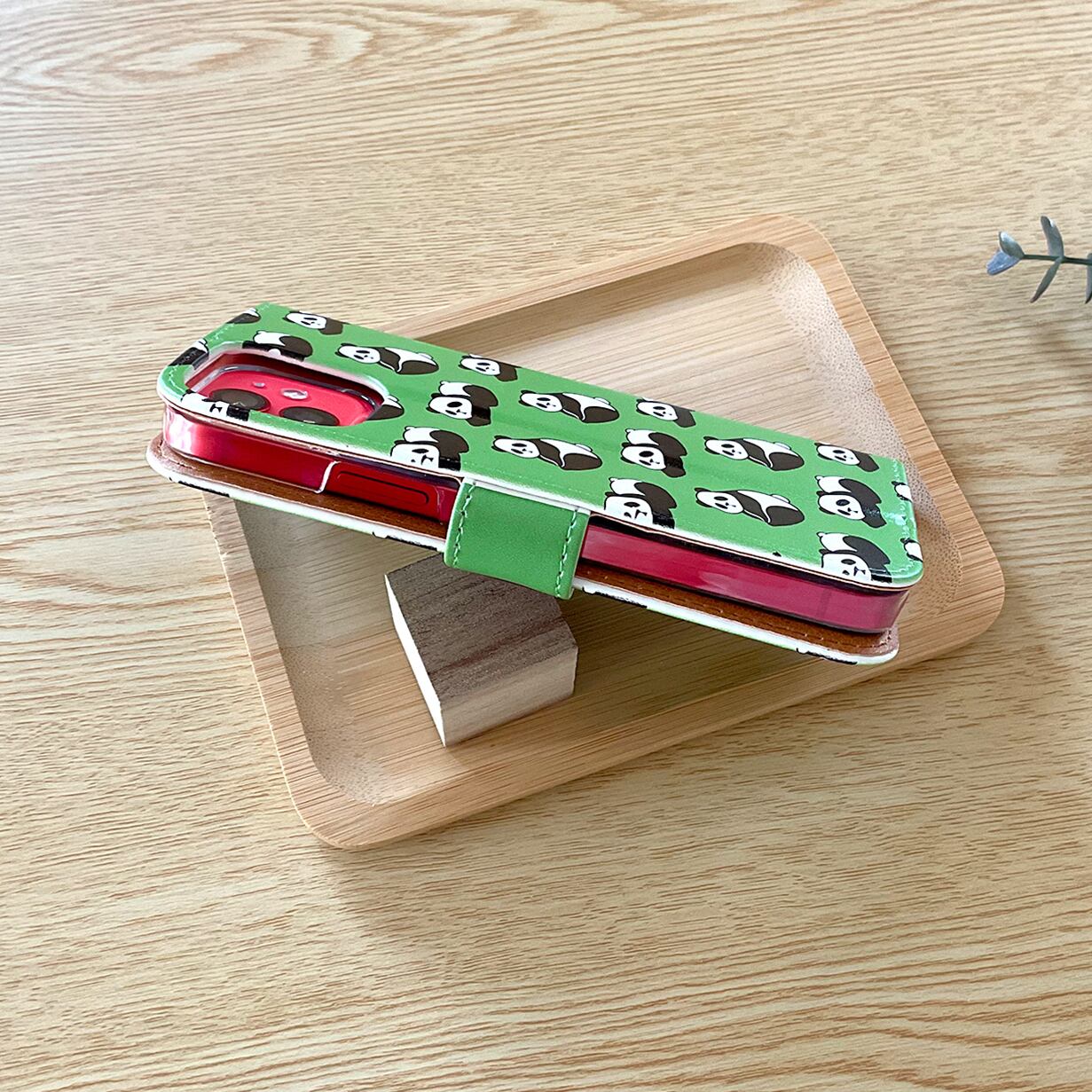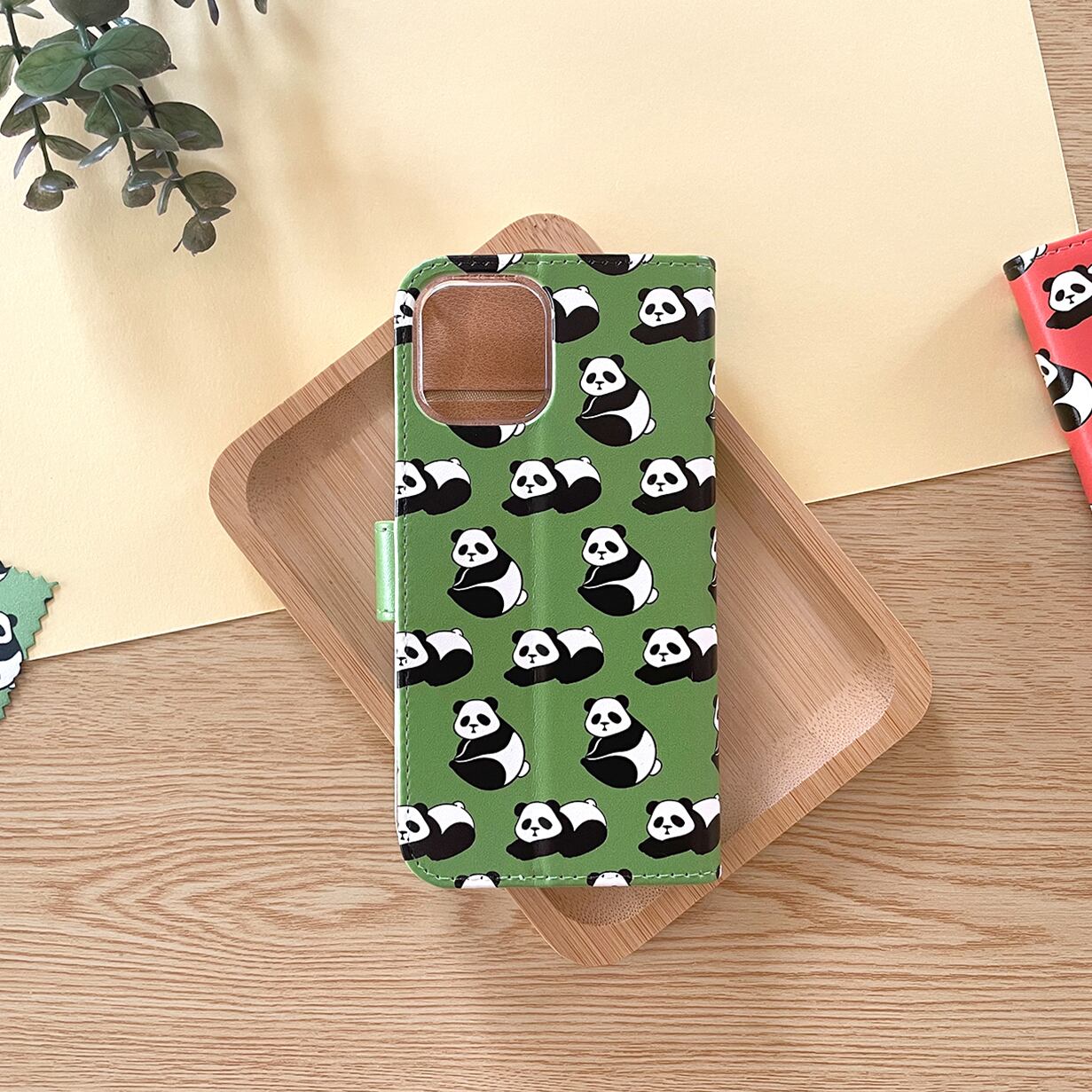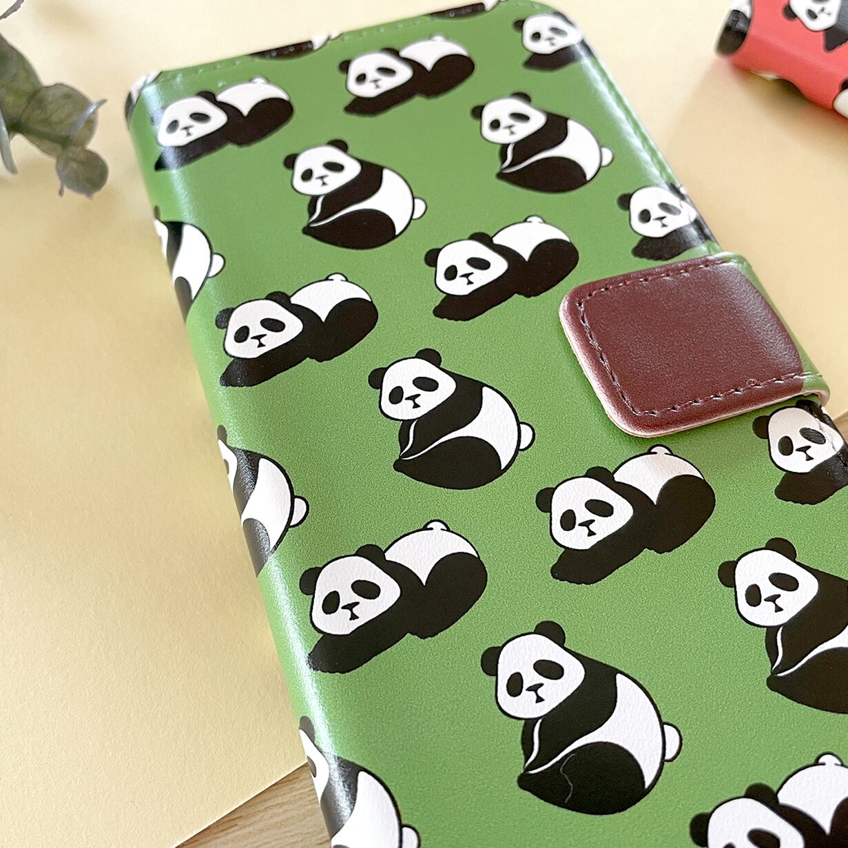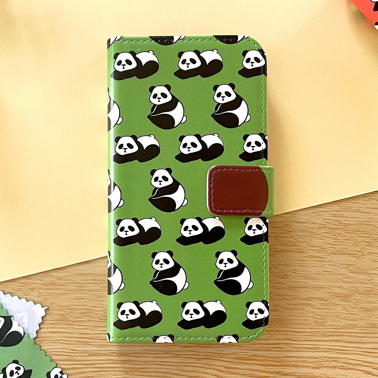 明るいカラーにパンダのイラストが映える、おしゃれなスマホケースです。